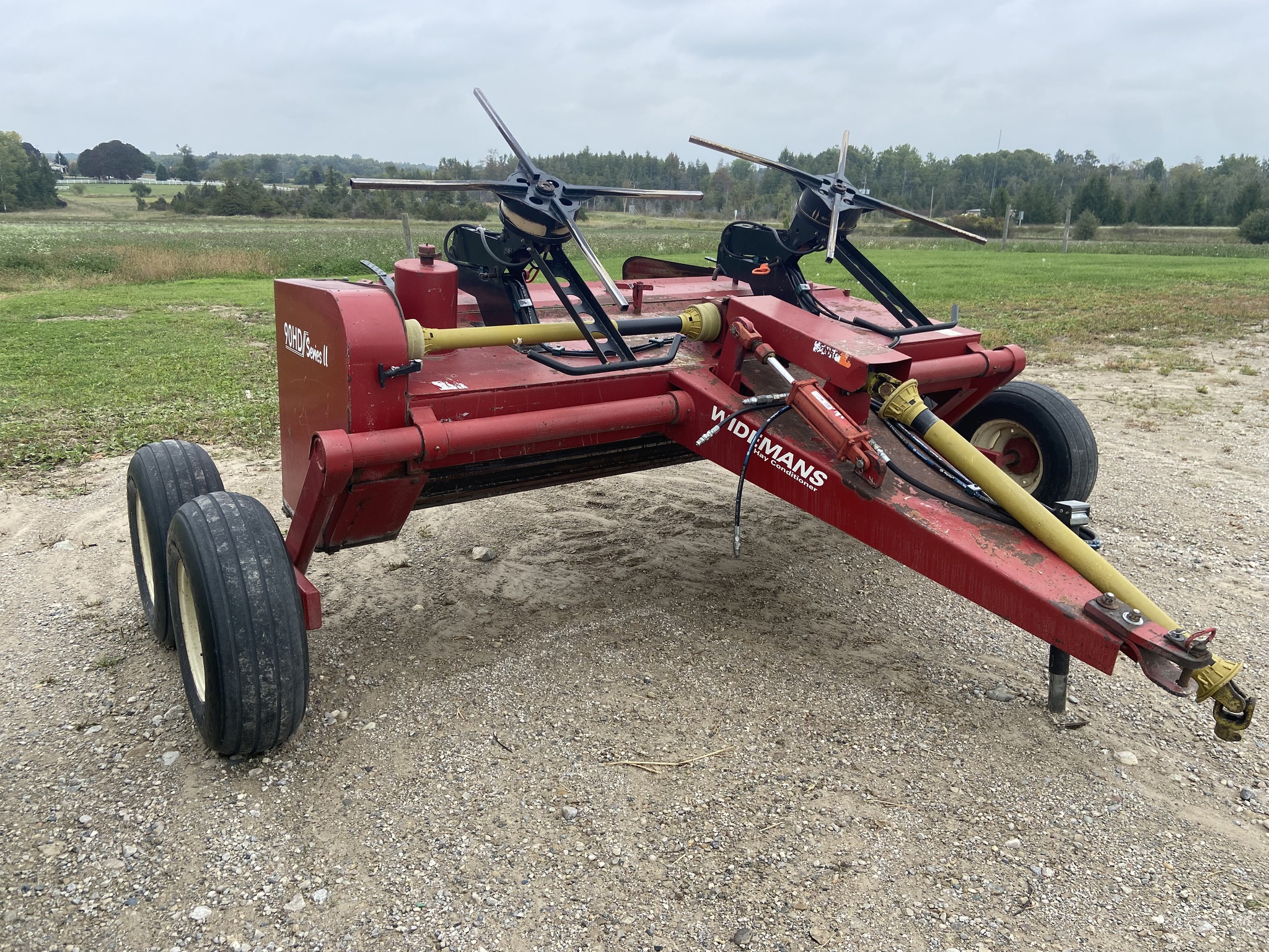 2003, WIDEMAN 9'HAY CRIMPER, INTERMESH STEEL ROLL, HYD TEDDER ON REAR, 540 PTO, DRAWBAR HITCH, WALKING TANDEMS, 9.5-15 TIRES