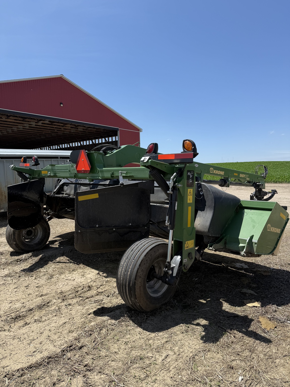 2023, KRONE, 16' ROTARY DISC, IMPELLER COND, 2PT CTR PIVOT HITCH, 1000RPM 1-3/8 PTO, HYD CUTTERBAR TILT, REV KNIVES, FLOTATION TIRES, TRANSPORT LIGHTS, ONE OWNER, FIELD READY, UPGRADED TO TRIPLE MWRS ONLY USED 2 SEASONS