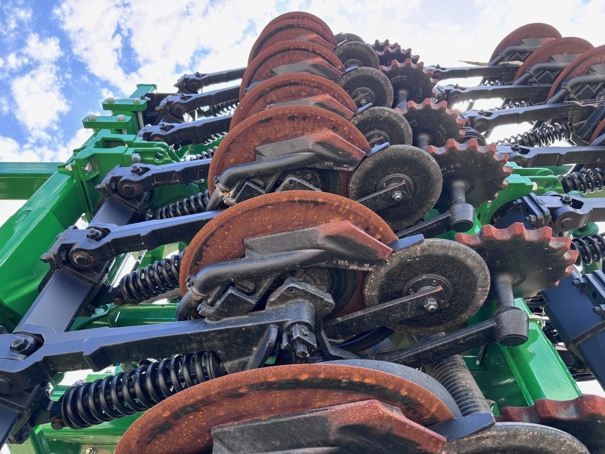 2025, 50', 7.5"SPACNG, ALL RUN BLOCKAGE, SGL DISC, FRONT RANK LOCKUP, CAST SERRATED CLOSING WHLS, SINGLE WING WHEELS, DUAL WING WHEELS, OPENER BLADES 100%, SEED BOOTS 100%, DRAWBAR SPADE HITCH, NARROW SPOKED GAUGE WHLS, UNIT HAS PLANTED APPROX 1200 ACRES, RECONDITIONED, FACTORY WARRANTY UNTIL 07JUL26