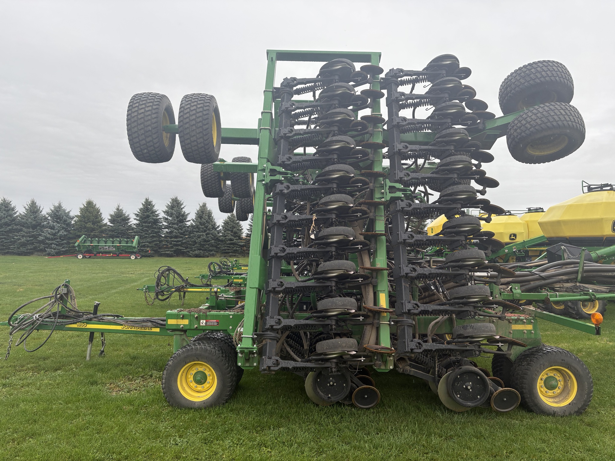 2017, 40', 7.5"SPACING, 1910-350BU TOW BEHIND-, 2 TANKS, SEEDSTAR DISPLAY METERING ROLLS INCL:, BLACK-REG RATE, GREEN-HIGH RATE, ORANGE-LARGE SEED, HYD DRIVE W/SECTION COMAND, 12" CONVEYOR, 8 TOWER DIST, SINGLE SHOOT, SINGLE CART WHEELS, VF710/70R38 99% MI, ALL RUN BLOCKAGE, SINGLE DISC, FRONT RANK LOCKUP, LESS MARKERS, CAST SMOOTH CLOSING WHEELS, 31-13.5-15 HI-FLO, DUAL WING WHEELS, OPENER BLADES 0%, SEED BOOTS 50%, DRAWBAR SPADE HITCH, CART FRONT DUAL CASTER TIRES 500/45R22.5 50%BKT, 22881 ACRES, RECONDITIONED