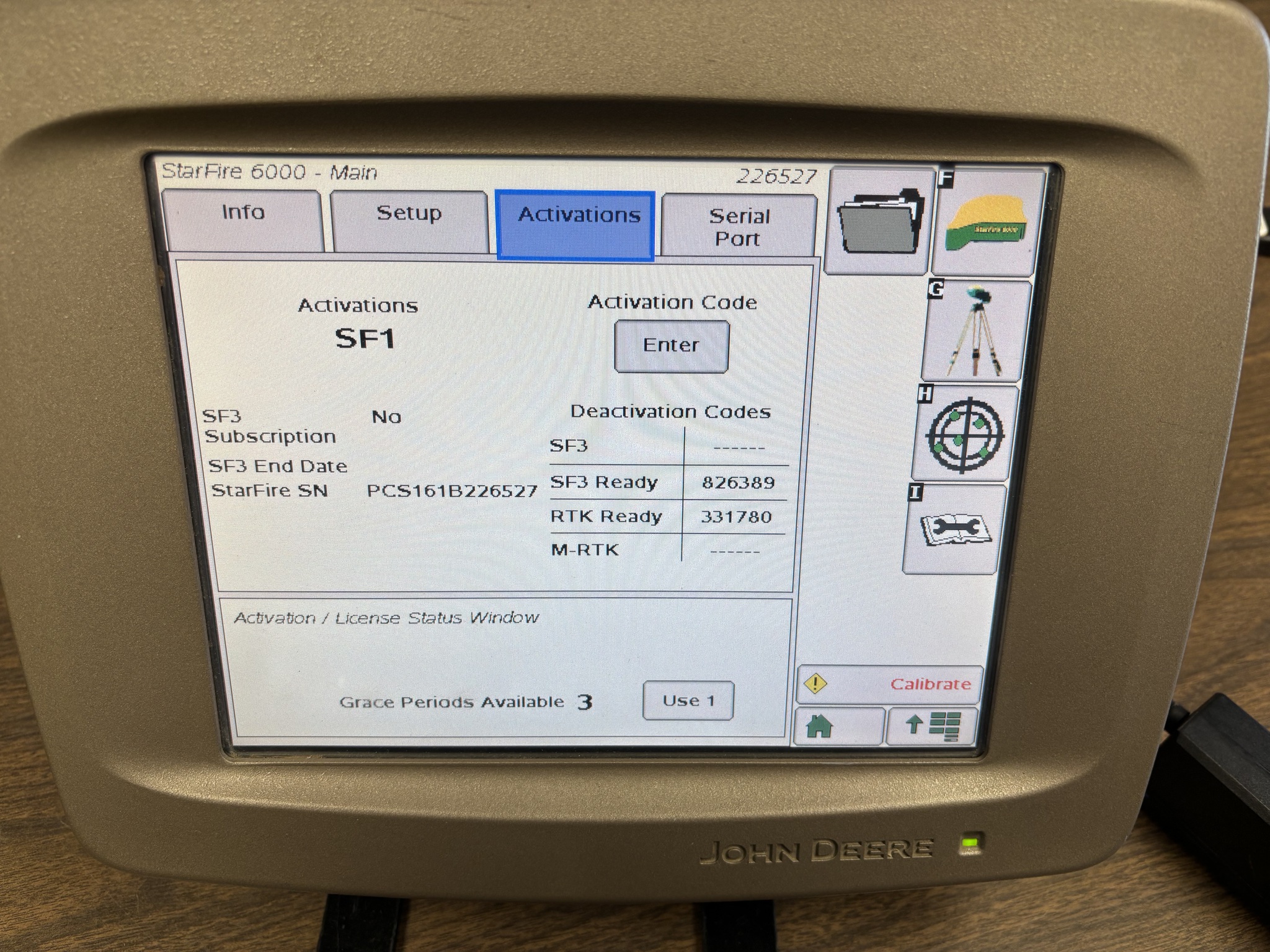 JD SF1 SF6000 RECEIVER, W/3603 HRS, 4.60H SOFTWARE