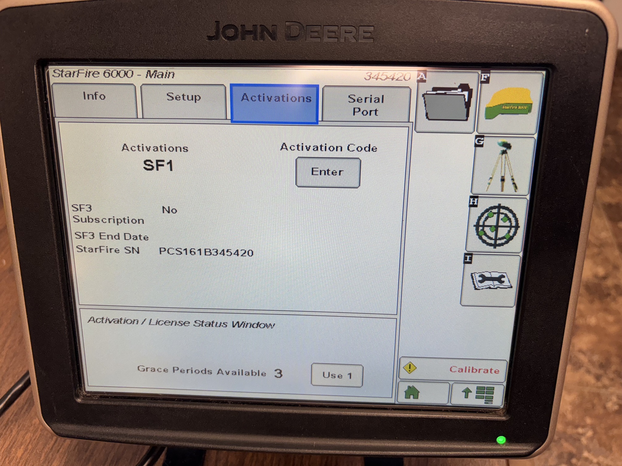 2020, JD STARFIRE 6000 RECEIVER, SF1 ACTIVATION, 4.60H SOFTWARE, 5726 HOURS