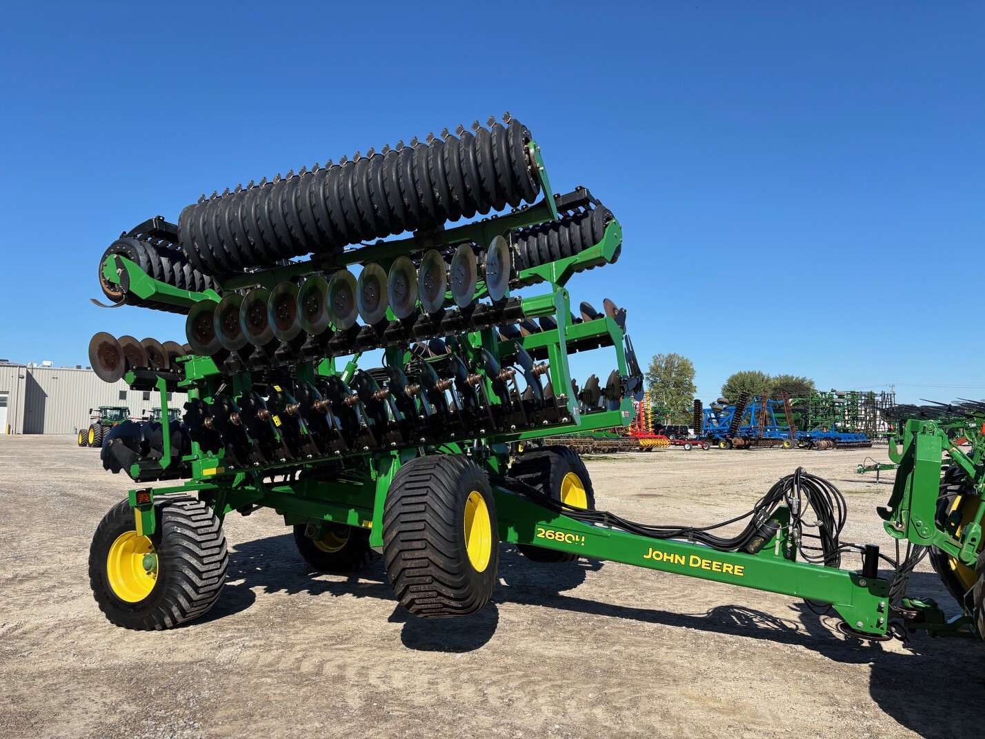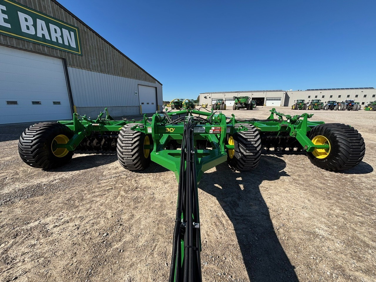 2022, 30', INDIVIDUAL MOUNTED BLADES, JD TRUSET, HIGH SPEED DISC, SAFETY CHAIN, TRANSPORT LIGHS, ADJ FRONT TO REAR SPACING, 20" FRT BLADE DIA, 18.75" REAR BLADE DIA, 3-SECTION 2 WINGS, NOTCHED FRONT BLADES, SMOOTH REAR BLADES, DRAWBAR, SINGLE WHEELS ON MAIN AND WINGS, LOW CONCAVITY, RUBBER ROLLER, SELLING FIELD READY