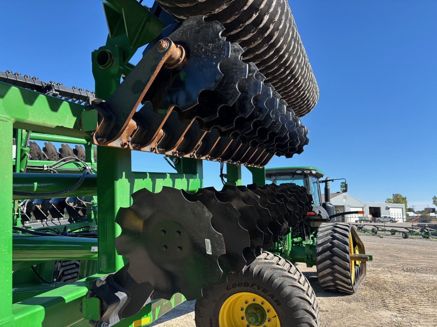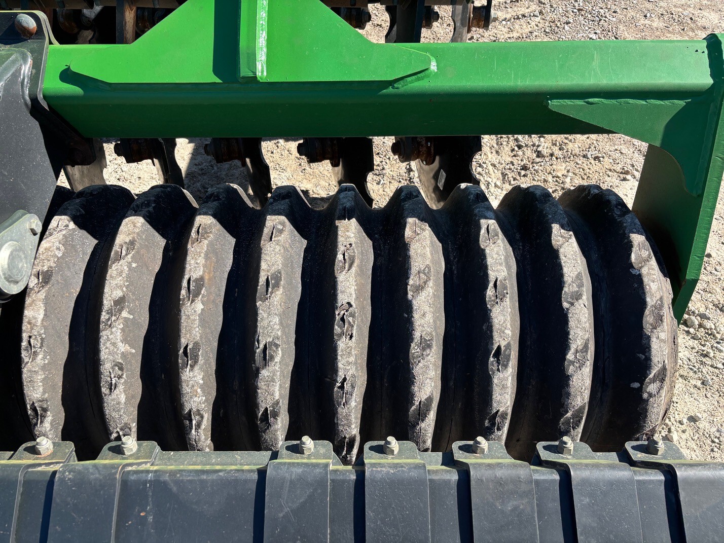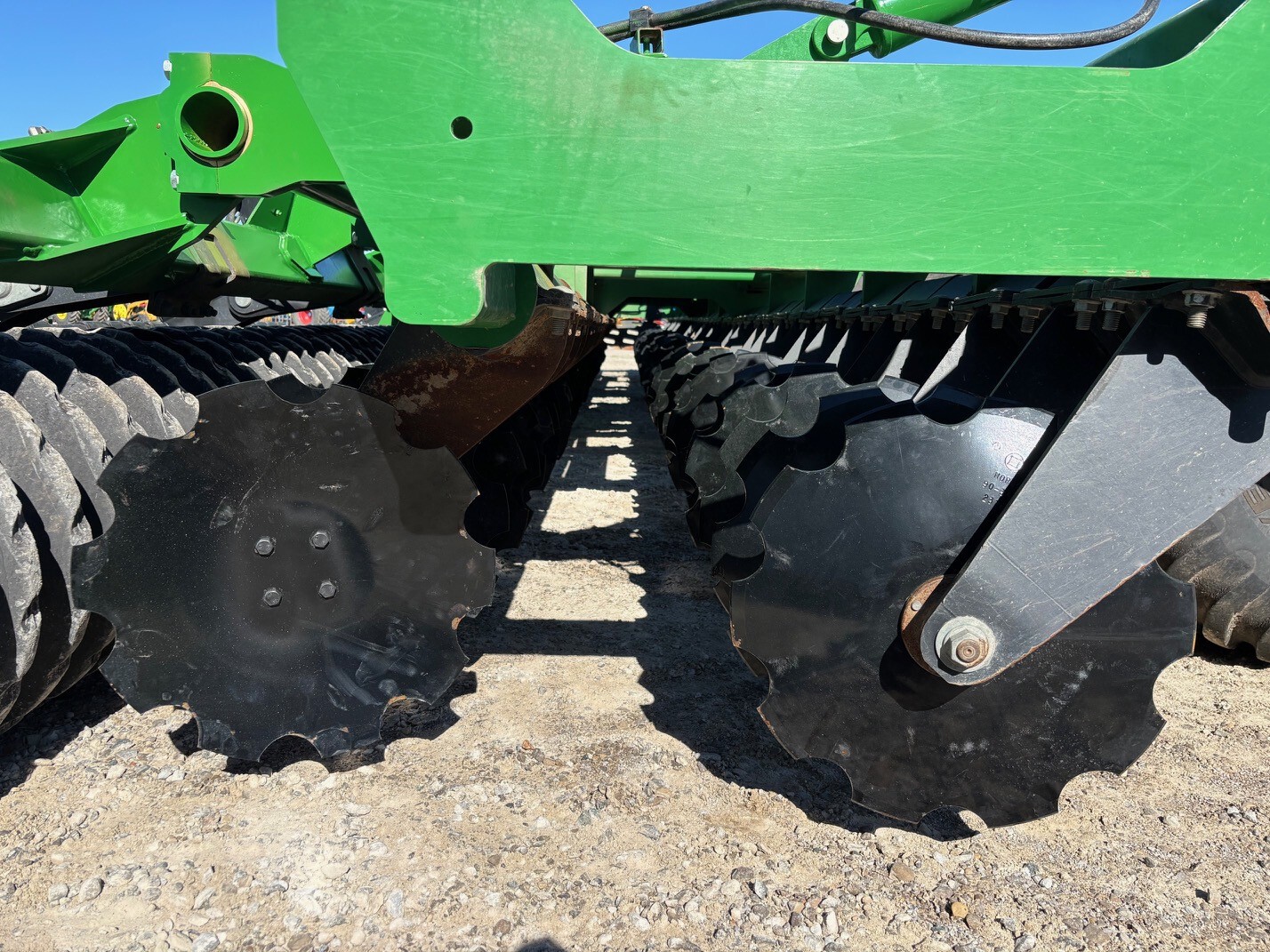 2023, 35', RUBBER CUSH GANGS, HIGH SPEED DISC, JD TRUSET, SAFETY CHAIN, TRANSPORT LIGHTS, 710/40R22.5 60%, WING TIRES 600/50R22.5 60%, 9" FRONT BLADE SPACING, 9" REAR BLADE SPACING, BLADES 100%, 25"RUBBER ROLL ATTACH W/HYD SCRAPERS, SELLING FIELD READY