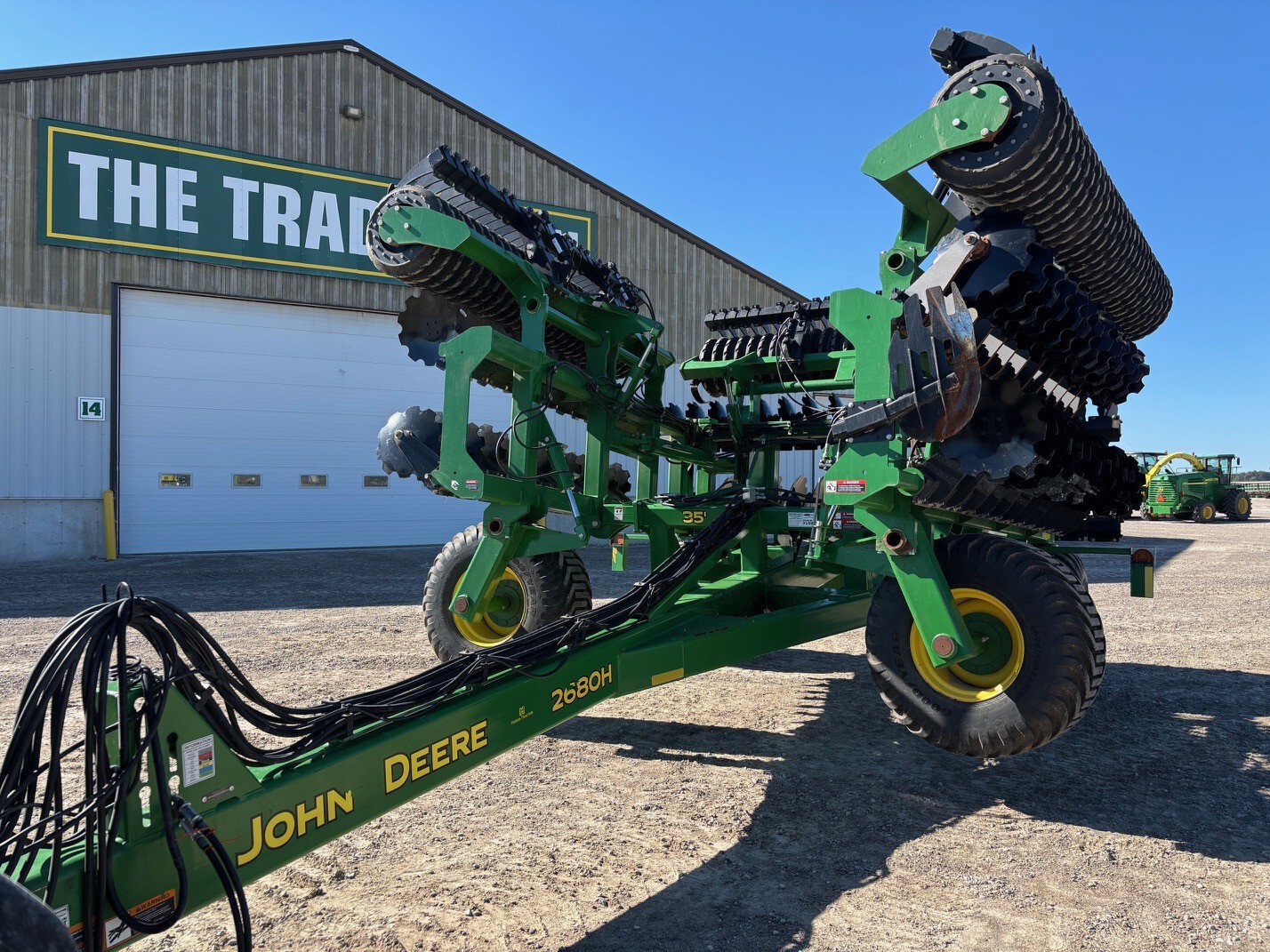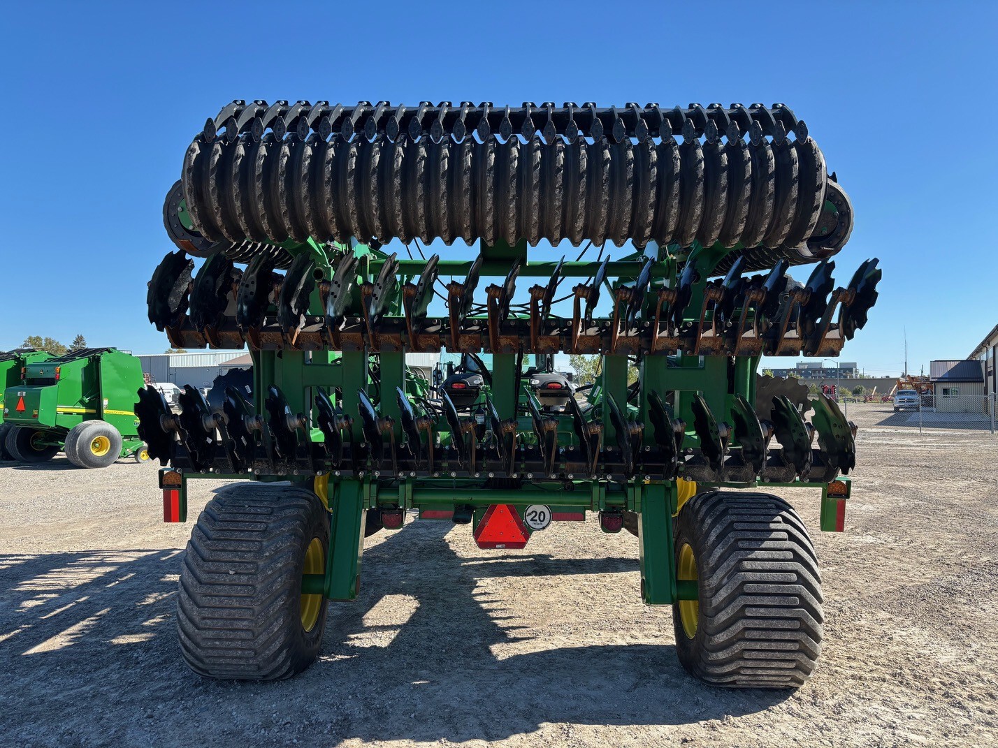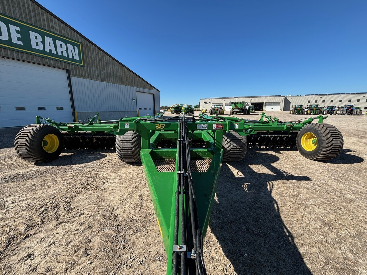 2023, 35', RUBBER CUSH GANGS, HIGH SPEED DISC, JD TRUSET, SAFETY CHAIN, TRANSPORT LIGHTS, 710/40R22.5 60%, WING TIRES 600/50R22.5 60%, 9" FRONT BLADE SPACING, 9" REAR BLADE SPACING, BLADES 100%, 25"RUBBER ROLL ATTACH W/HYD SCRAPERS, SELLING FIELD READY
