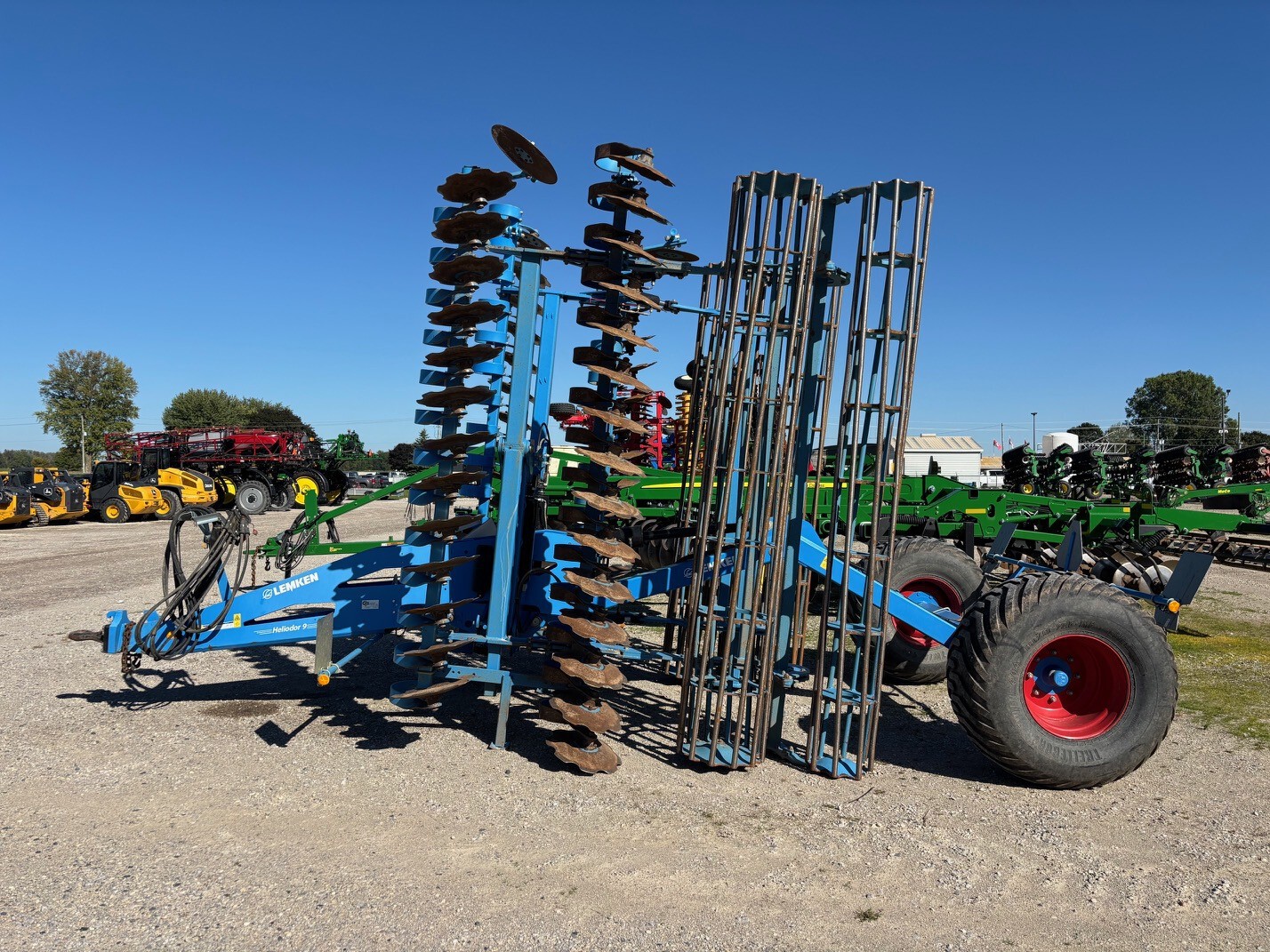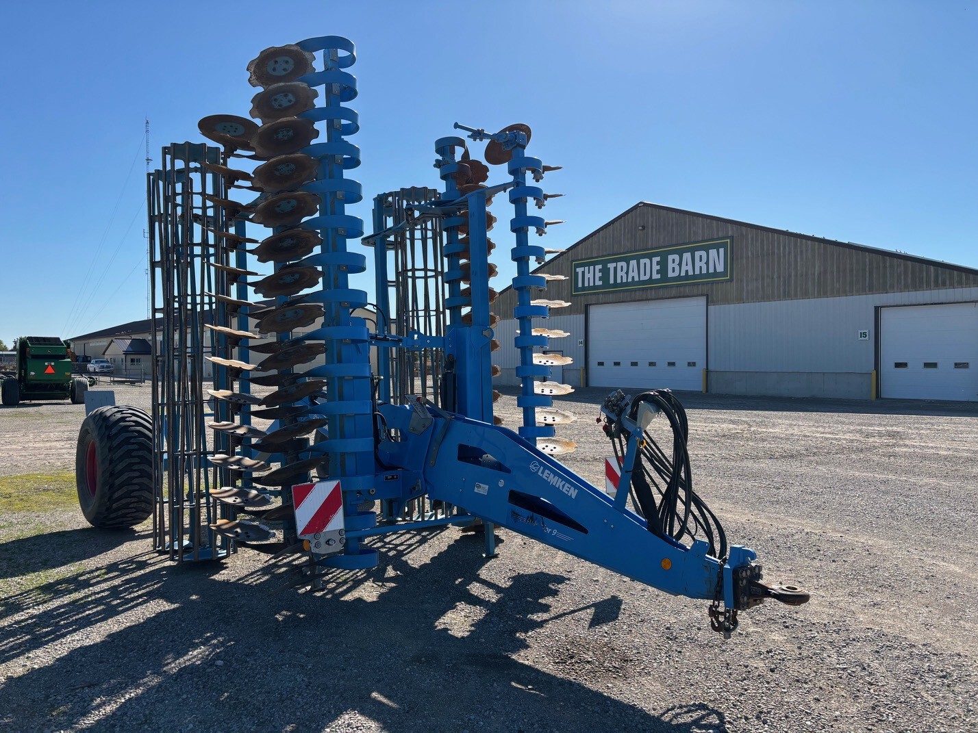 2022, LEMKEN, 22.5', INDIVIDUAL MOUNTED BLADES, HIGH SPEED DISC, MANUAL LEVEL, TRANSPORT LIGHTS, 2 SECT CTR FOLD, LOW CONCAVITY, LESS SCRAPERS, NOTCHED FRONT & REAR BLADES, SPADE HITCH, SINGLE WHEELS ON MAIN, DOUBLE CAGE ROLLER