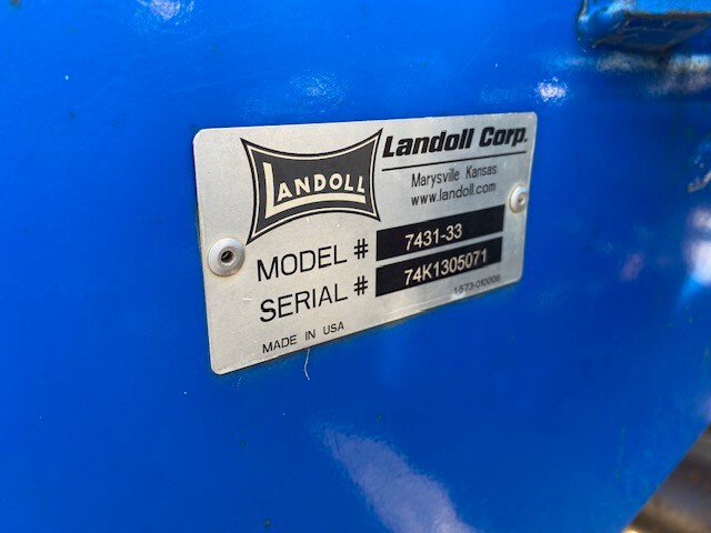 2013, LANDOLL, 33', RUBBER CRUSH GANGS, VERT TILL, SINGLE POINT DEPTH CONTORL, WING STABILIZER WHLS, GANG WRENCH, SPADE HITCH, 20.75" FRONT BLADE DIA, 20.75" REAR BLADE DIA, 3 SECTION 2 WINGS, REG CONCAVITY, SMOOTH FRONT & REAR BLADES, HYD REEL/BASKET, DUAL WHEELS ON MAIN, DUAL WHEELS ON WINGS