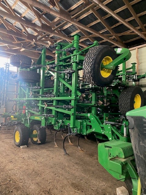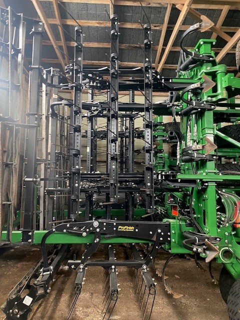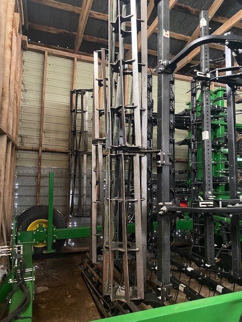 2022, CONSIGN, 44.5', 6"SPACING, C-SHANK, 7"SWEEP, JD PERMA-LOC SWEEPS, 100% SWEEP LIFE REMAIN, 5 SECTION DBL FOLD, FLOATING HITCH, RADIAL TIRES, WALKING TANDEM ON MAIN, WALKING TANDEM ON WING, 3-BAR TINE W/BASKET, BASKET IS ROUND BAR, TRANSPORT LIGHTS, WING STABILIZER WHEELS, REAR HITCH W/HYD, TRU-SET DEPTH CONTROL-, LESS DISPLAY, VERY FEW ACRES ON UNIT-LIKE A DEMO, SELLING FIELD READY