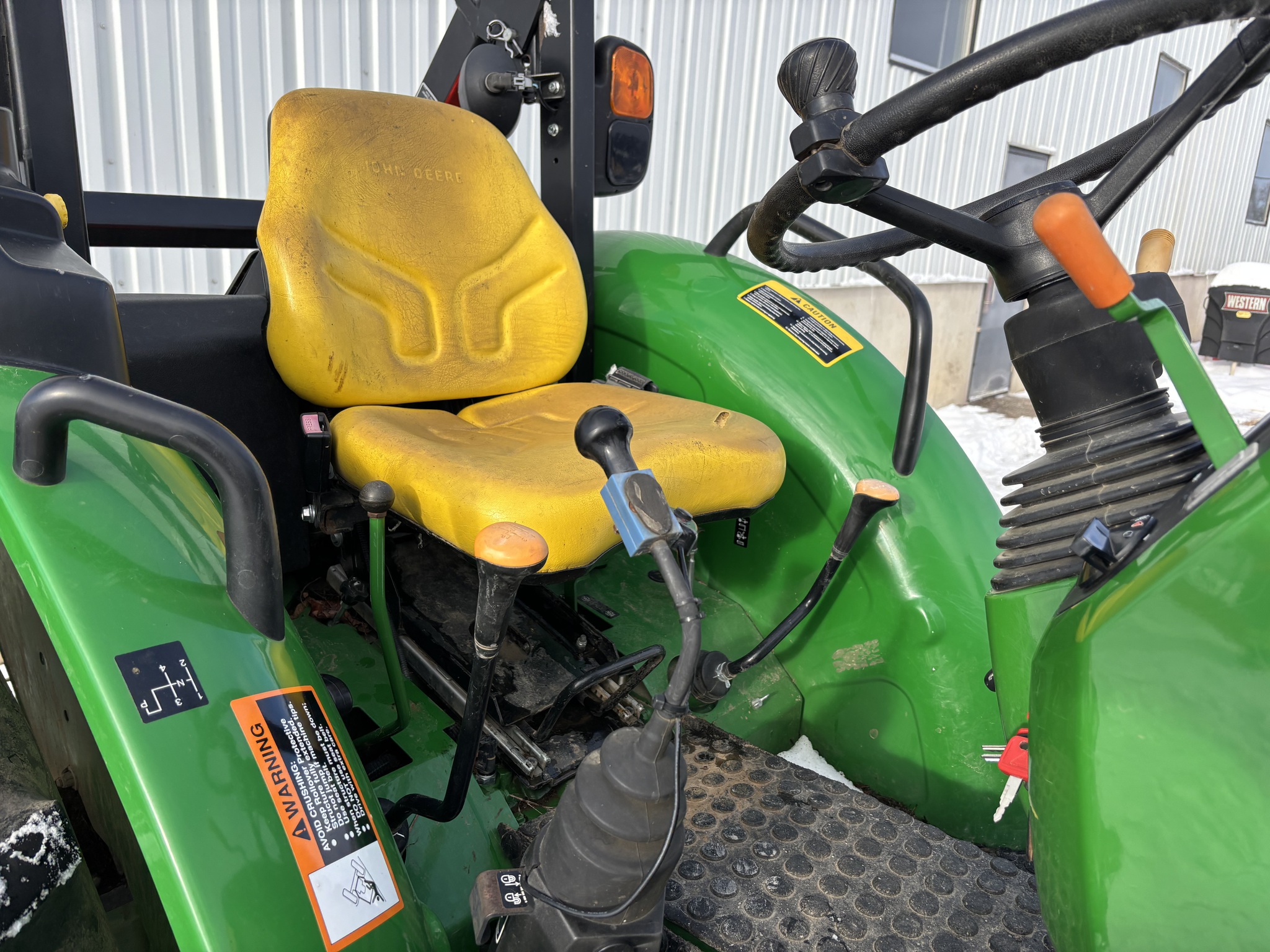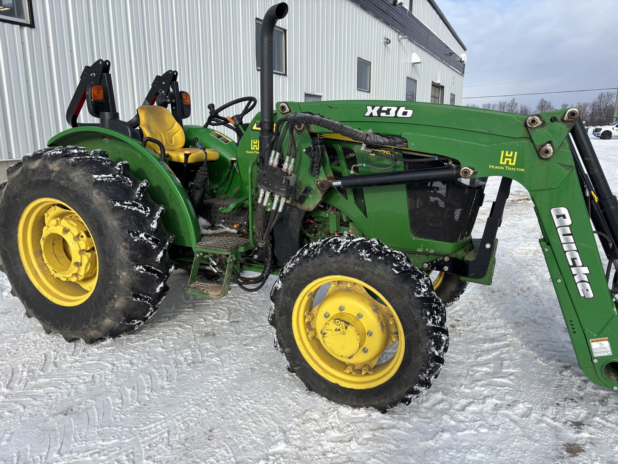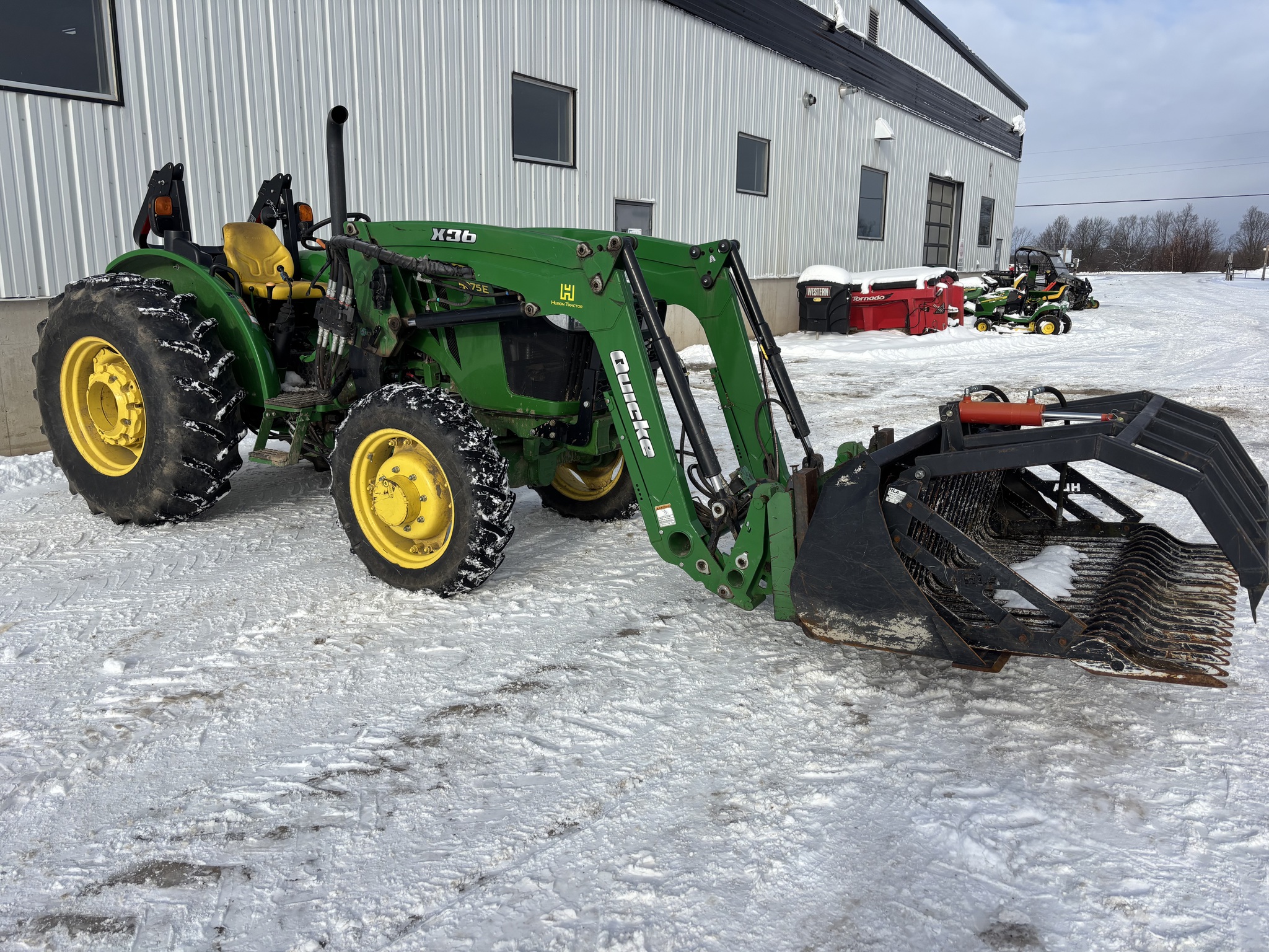 2017, MFWD, 75ENG HP, 775HR, OOS, QUICKE X3 LDR, 73"BKT, 32KPH, 12SPD, PWR REV, LH REV, FLANGE AXL, 9.5-24 25% GY, 16.9-28 65% GY, PALLET FORK, 6' HLA STONE FORK W/GRAPPLE, 3FUNC MID LDR VALVE, 540 PTO, CAT 2-3PT HITCH, FOOT THROTTLE, BLOCK HEATER, MECH LDR JOYSTICK, EURO CARRIER
