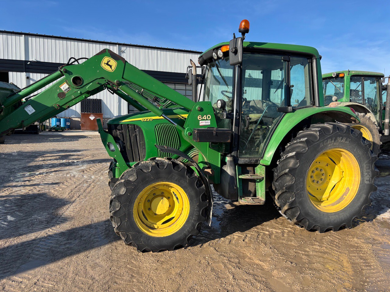 2006, MFWD, 90ENG HP, 8950HR, CAB, 640NSL LDR, 85"BKT, 32KPH, 16F/16R SPD, PQ, LH REV, FLANGE AXL, 13.6R24 60%, 18.4R34 70%, 2 REMOTES, 540 PTO, 2FUNC MID LDR VALVE, CAT 2-3PT HITCH, RH DOOR, DRAFT CONTROL, ROTARY BEACON LIGHT, AIR SEAT, RADIO, REAR WIPER, TELESCOPIC MIRRORS, FOOT THROTTLE, FRONT FENDERS, BLOCK HEATER, POWER FILL BRAKES, TOOL BOX, MECH LDR JOYSTICK, JD 640/740 CARRIER
