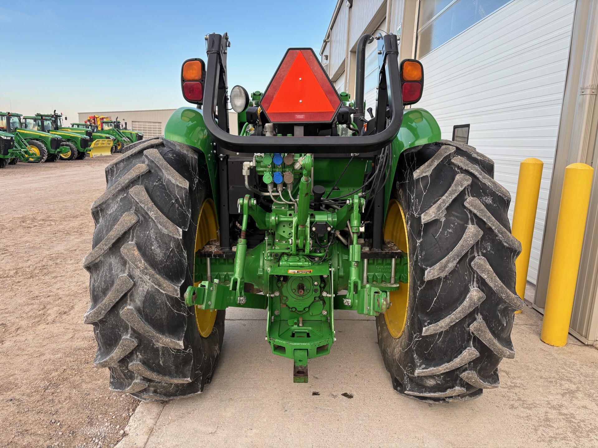 2017, MFWD, 85ENG HP, 1200HR, OOS, JD 520M SL LDR, 84"BKT, 32KPH, 24 SPD, PWR REV W/HI-LO, LH REV, FLANGE AXLE, 12.4x24 80%, 18.4x30 50%, 3 REMOTES, 2 FUNC MID LDR VALVE, 540 PTO, CAT 2-3PT HITCH, FOOT THROTTLE, LOADER READY PKG, HOOD GUARD, MECH LOADER JOYSTICK, LOADER SUBFRAMES, EURO CARRIER, SELLING FIELD READY