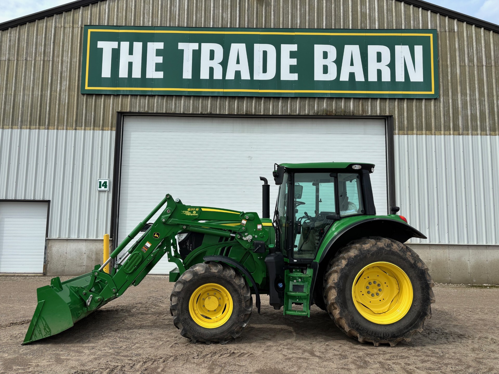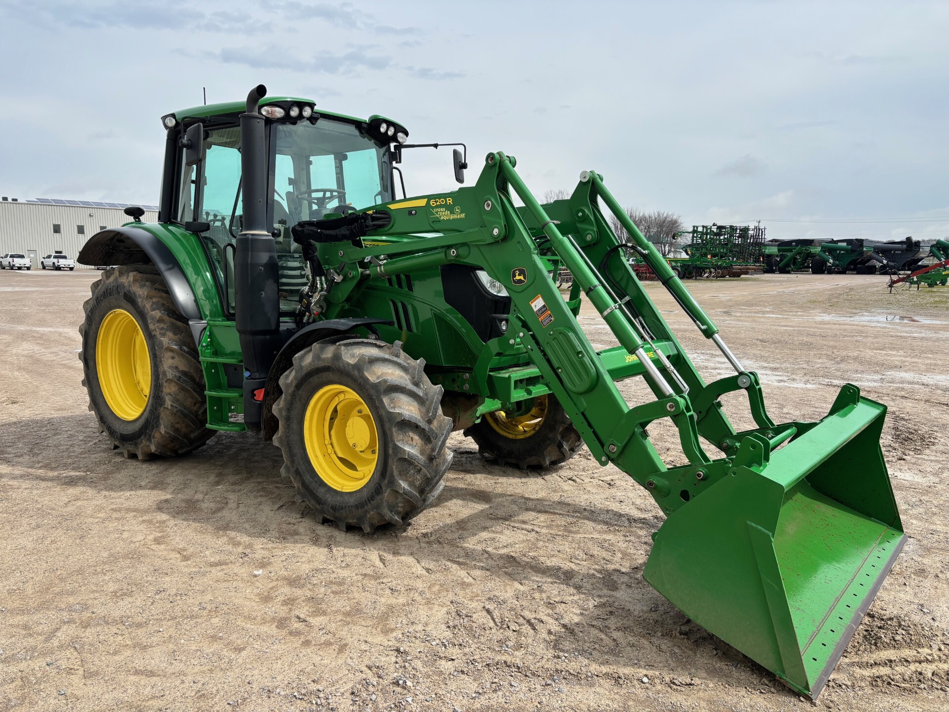 2024, MFWD, 130ENG HP, 800HR, CAB, JD 620R SL LDR, 84"BKT, 40KPH, 24 SPD, POWERQUAD+, LH REV, FLANGE AXLE, 420/70R24 80%, 520/70R34 80%, NO DUALS, GREENSTAR READY, CAB SUSPENSION, 3 REMOTES, 2FUNC MID LDR VALVE, 540/1000 PTO, CAT 2-3PT HITCH, AIR SEAT, RADIO, REAR WIPER, TELESCOPIC MIRRORS, FOOT THROTTLE, FRONT BASE WEIGHT, FRONT FENDERS, REAR FENDER EXT, MECH LDR JOYSTICK, HOOD GUARD, EURO CARRIER, SELL ASI RECONDITIONED