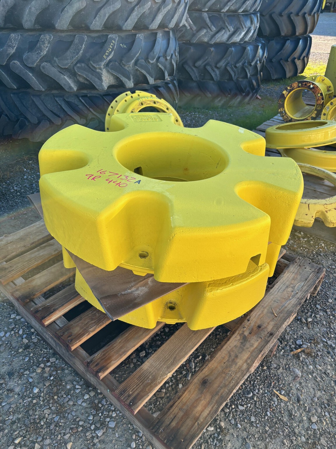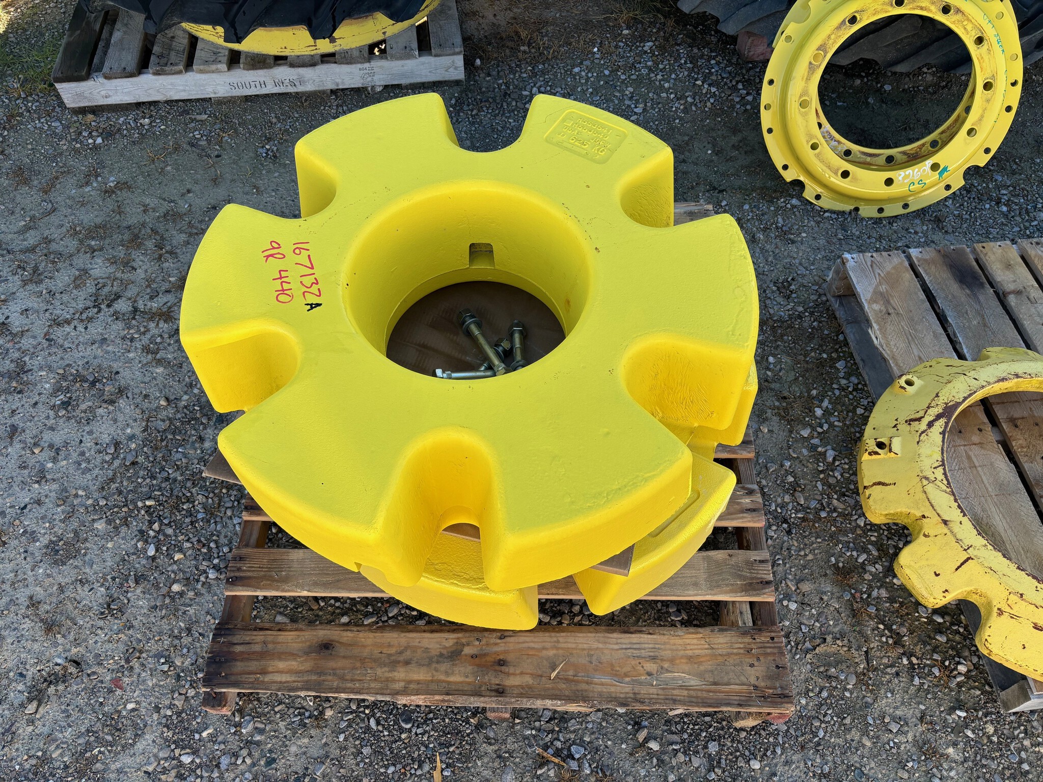 1 PAIR JD 625KG WHEEL WEIGHTS, OFF NEW JD 9R 440, WILL FIT JD LF6, 7, 8 & 9 SERIES W/CAST CENTER