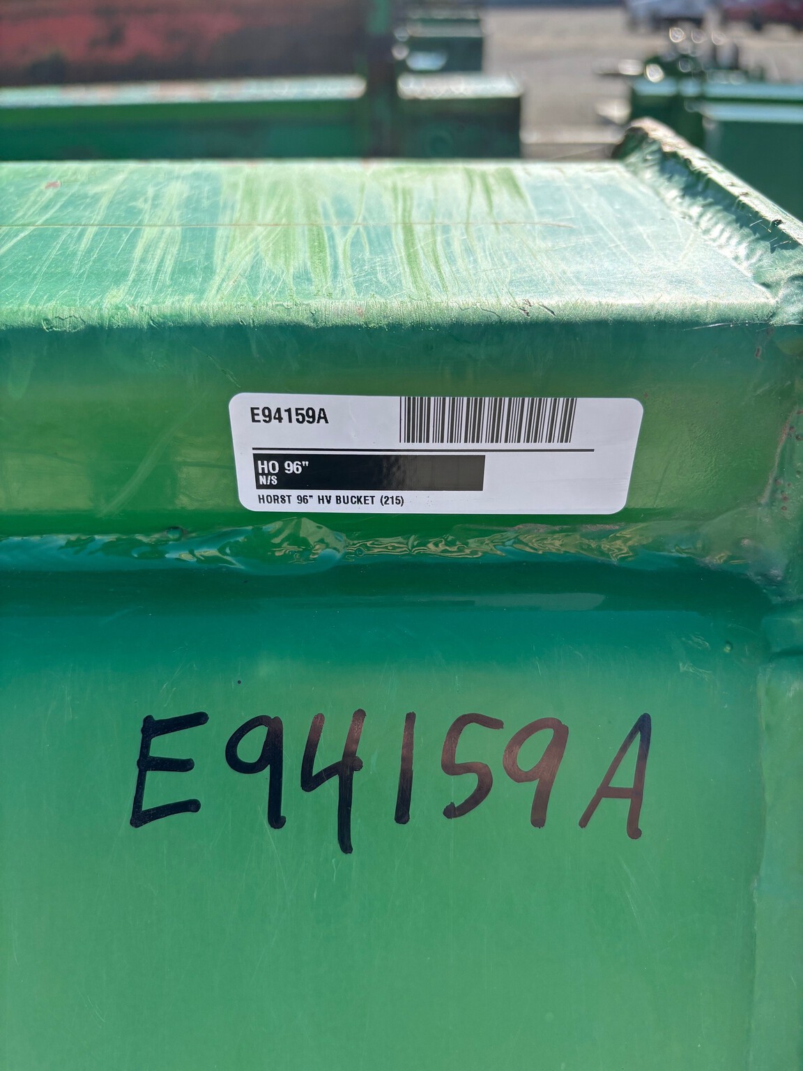 HORST 96" HIGH VOLUME HEAVY DUTY BUCKET, 8" CUTTING EDGE, GREEN, GLOBAL ATTACH, LIKE NEW, OFF JD 6R 175