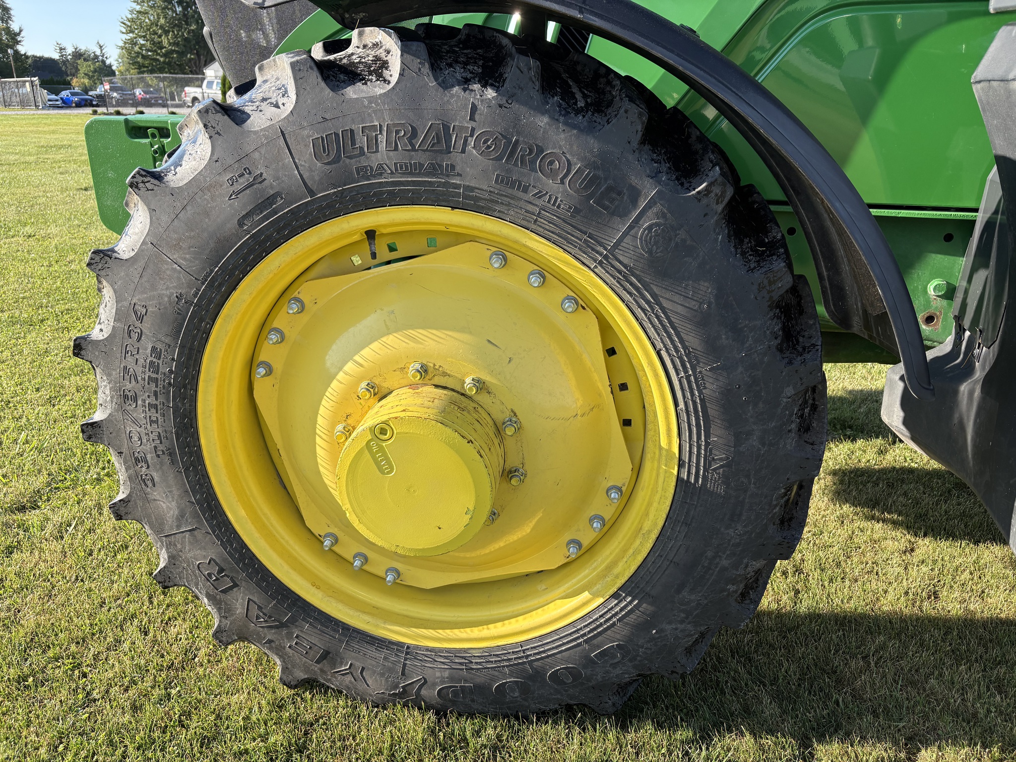 2018, MFWD W/SUSP, 145ENG HP, 2557HR, CAB, 40KPH, AUTOPWR IVT, LH REV, R&P AXLE W/CAST CENTER, 380/85R34 60% GY, 380/90R50 60% GY, NO DUALS, AUTOTRAC READY, AUTOTRAC ACTIVATION, JD LINK CAP, GEN.4 COMMAND CENTER, 10" TOUCH COMMAND CENTER, 3 ELECTRONIC REMOTES, 540/540E/1000 PTO, CAT 3-3PT HITCH, 3PT SWAY CONTROL BLOCKS, ROTARY BEACON LIGHT, RH DOOR, AIR SEAT, INSTRUCTOR SEAT, SAT RADIO & BLUETOOTH, REAR WIPER, TELESCOPIC MIRRORS, FOOT THROTTLE, FRONT BASE WEIGHT, TURNABLE FRONT FENDERS, BLOCK HEATER, CORNERPOST EXHAUST, TOOL BOX