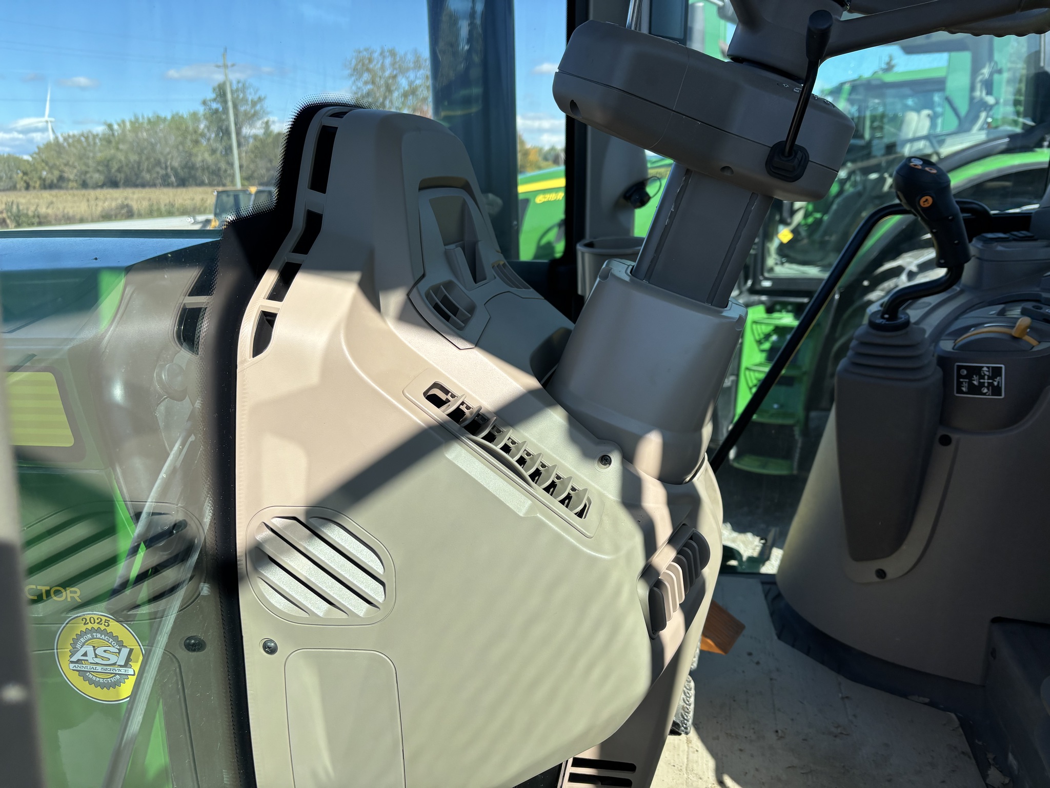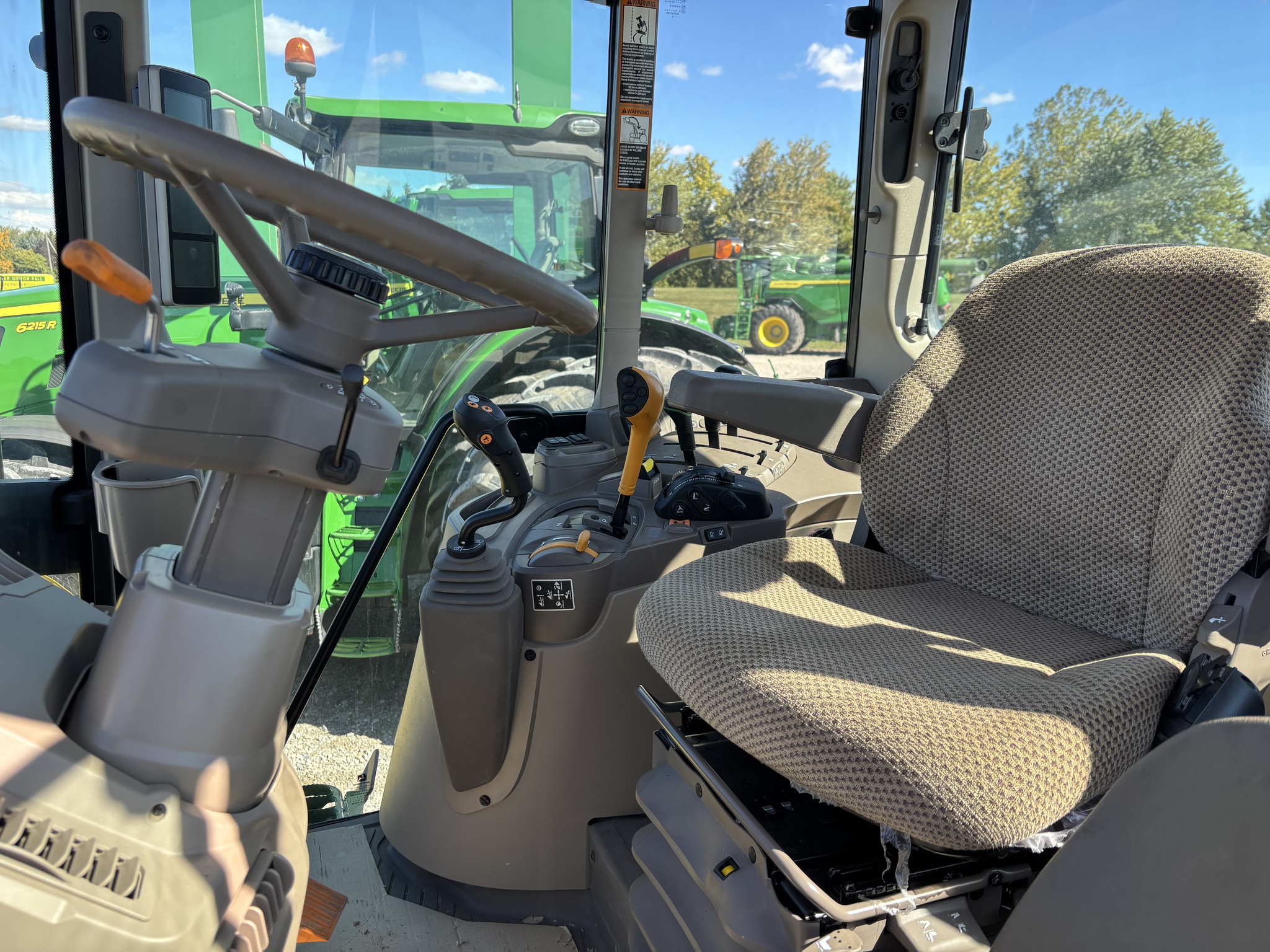 2024, MFWD, 155ENG HP, 225HRS, CAB, 40KPH, 20F/20R, AUTOQUAD+, LH REV, 100"R&P AXLE CAST WHL, 540/65R28 FS 95%, 650/65R38 FS 95%, NO DUALS, AUTOTRAC READY, JD LINK ACTIVATION, 3 REMOTES, 3FUNC MID LDR VALVE, 540/1000PTO, CAT 3-3PT HITCH, SWAY CONTROL BLOCKS, BELTLINE ROAD LIGHTS, BEACON LIGHTS, EXTREMITY WARNING LIGHTS, INSTRUCTOR SEAT, PANORAMA GLASS ROOF, SAT RADIO & BLUETOOTH, TELESCOPIC MIRRORS, FRONT BASE WEIGHT, TURNABLE FRONT FENDERS, REAR FENDER EXT, BLOCK HEATER, DRAWBAR CLEVIS, CORNERPOST EXHAUST, TOOL BOX, LOADER READY PKG, MECH LOADER JOYSTICK, 114L/M HYD PUMP, FACTORY WARR UNTIL 10/2026, SELL ASI RECONDITIONED