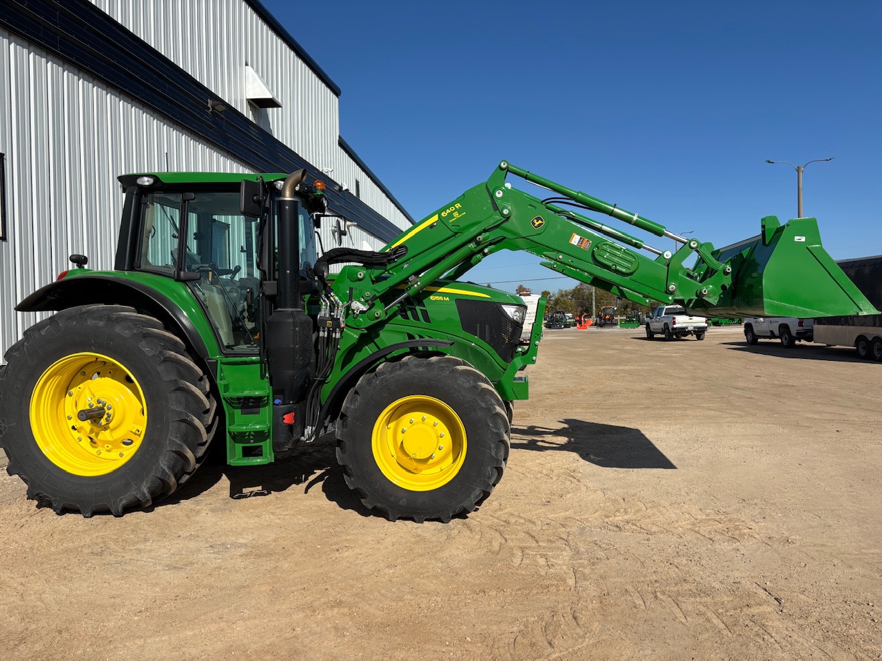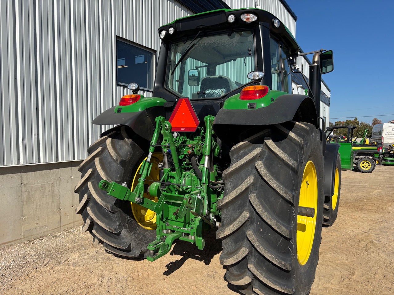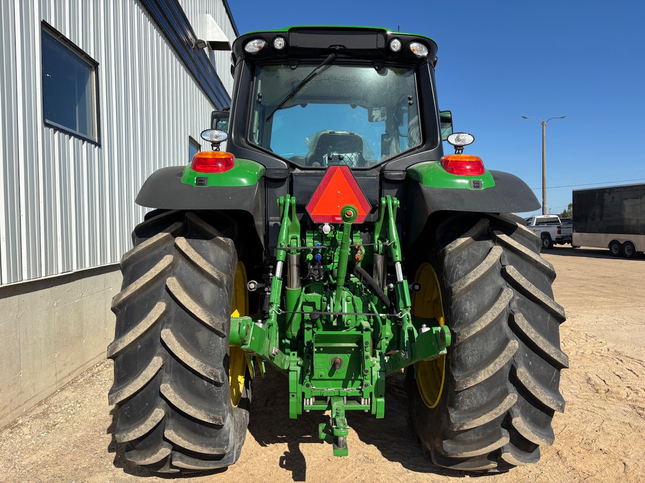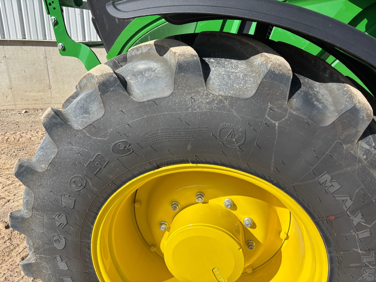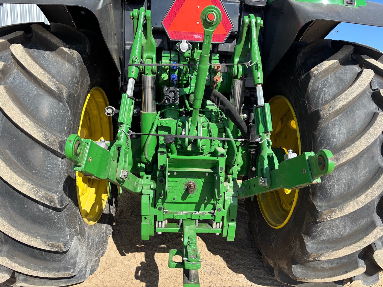2024, MFWD, 155ENG HP, 175HRS, CAB, 40KPH, 20F/20R, AUTOQUAD+, LH REV, 100"R&P AXLE CAST WHL, 540/65R28 FS 95%, 650/65R38 FS 95%, NO DUALS, AUTOTRAC READY, JD LINK ACTIVATION, 3 REMOTES, 3FUNC MID LDR VALVE, 540/1000PTO, CAT 3-3PT HITCH, BEACON LIGHTS, EXTREMITY WARNING LIGHTS, INSTRUCTOR SEAT, PANORAMA GLASS ROOF, SAT RADIO & BLUETOOTH, TELESCOPIC MIRRORS, FRONT BASE WEIGHT, TURNABLE FRONT FENDERS, REAR FENDER EXT, BLOCK HEATER, DRAWBAR CLEVIS, CORNERPOST EXHAUST, TOOL BOX, LOADER READY PKG, MECH LOADER JOYSTICK, 114L/M HYD PUMP, FACTORY WARR UNTIL 10/2026, SELL ASI RECONDITIONED, SWAY CONTROL BLOCKS, BELTLINE ROAD LIGHTS, NEW JD 640R LDR MOUNTED - NOT INCLUDED, IN PRICE