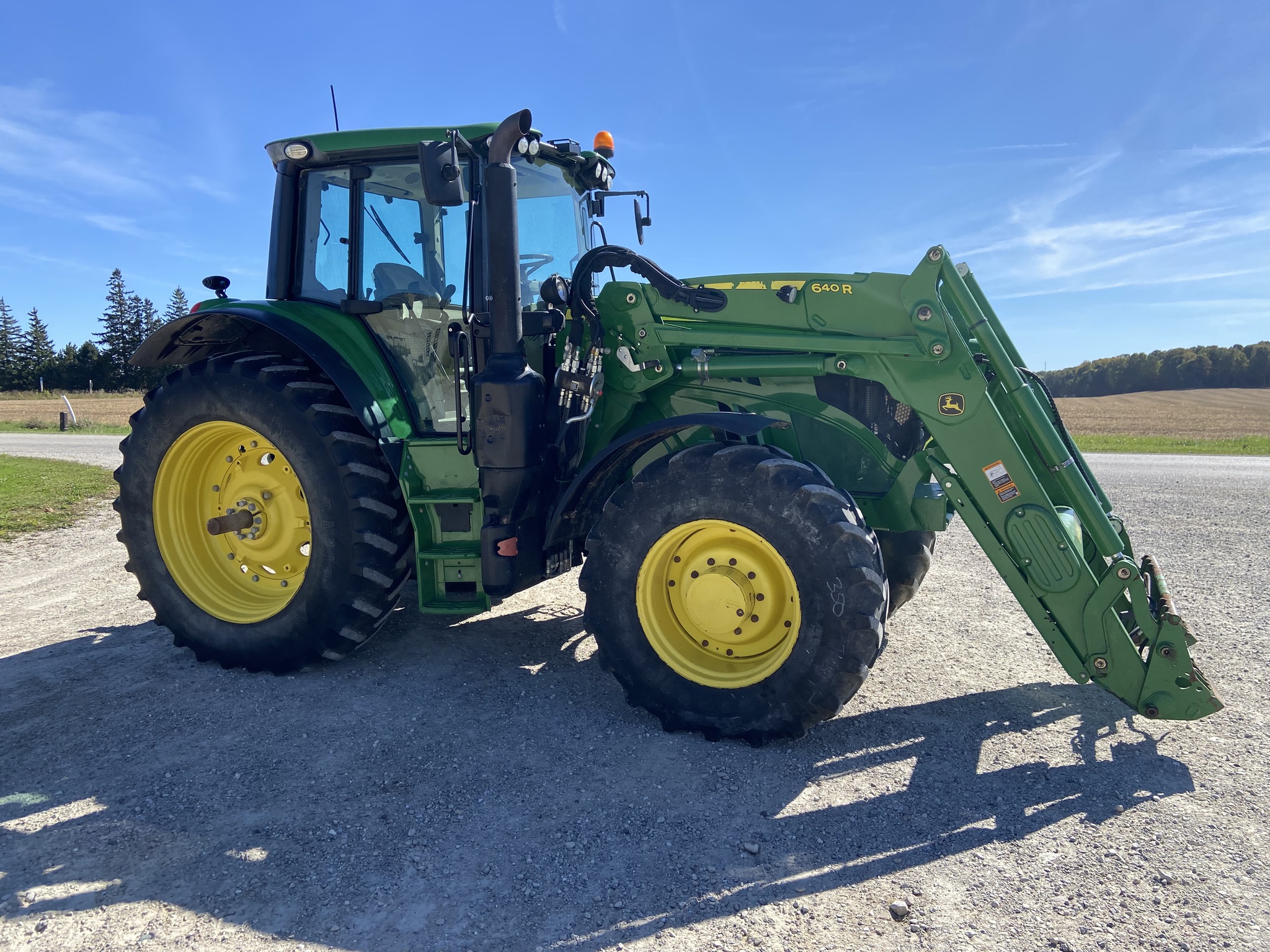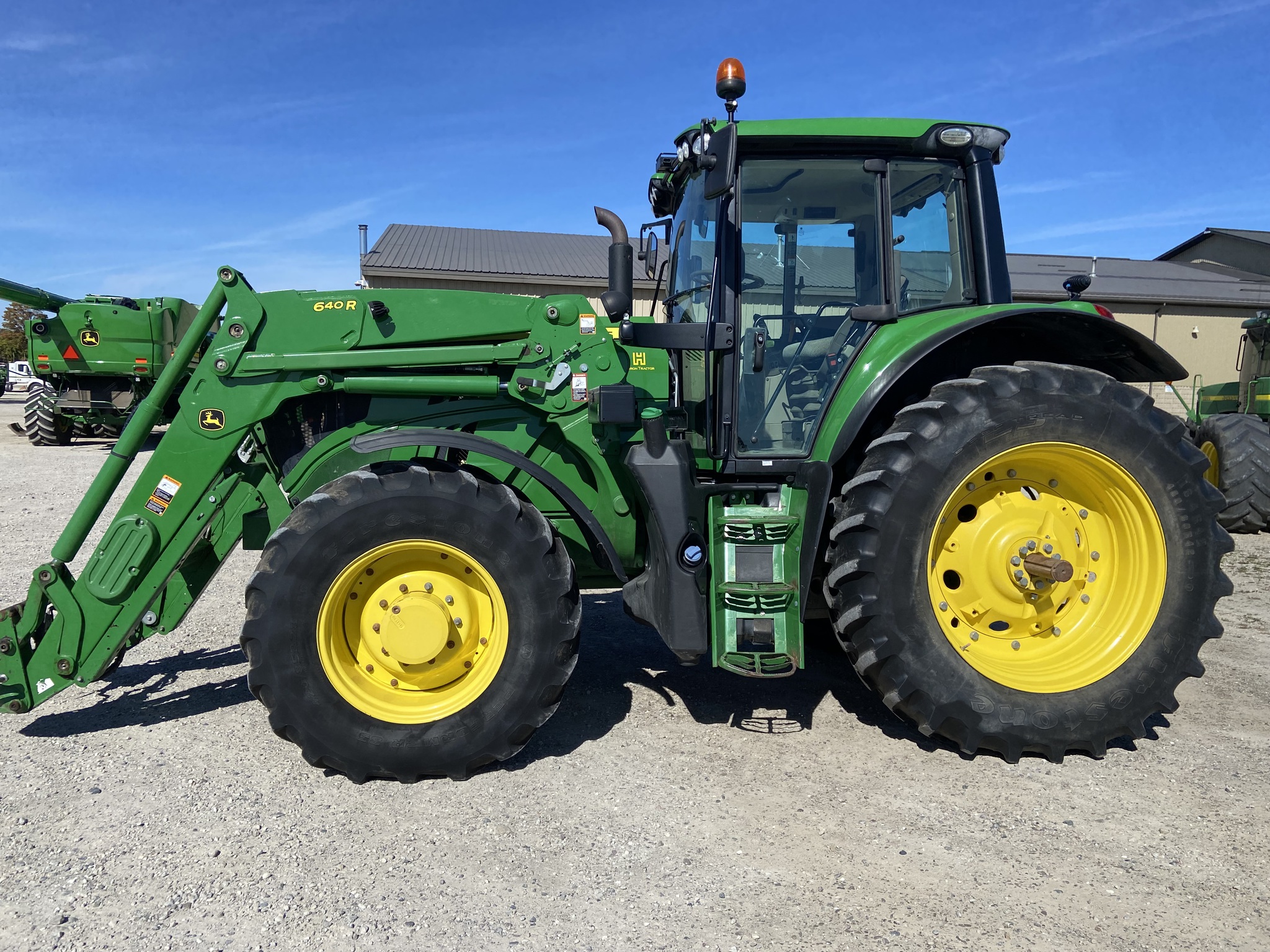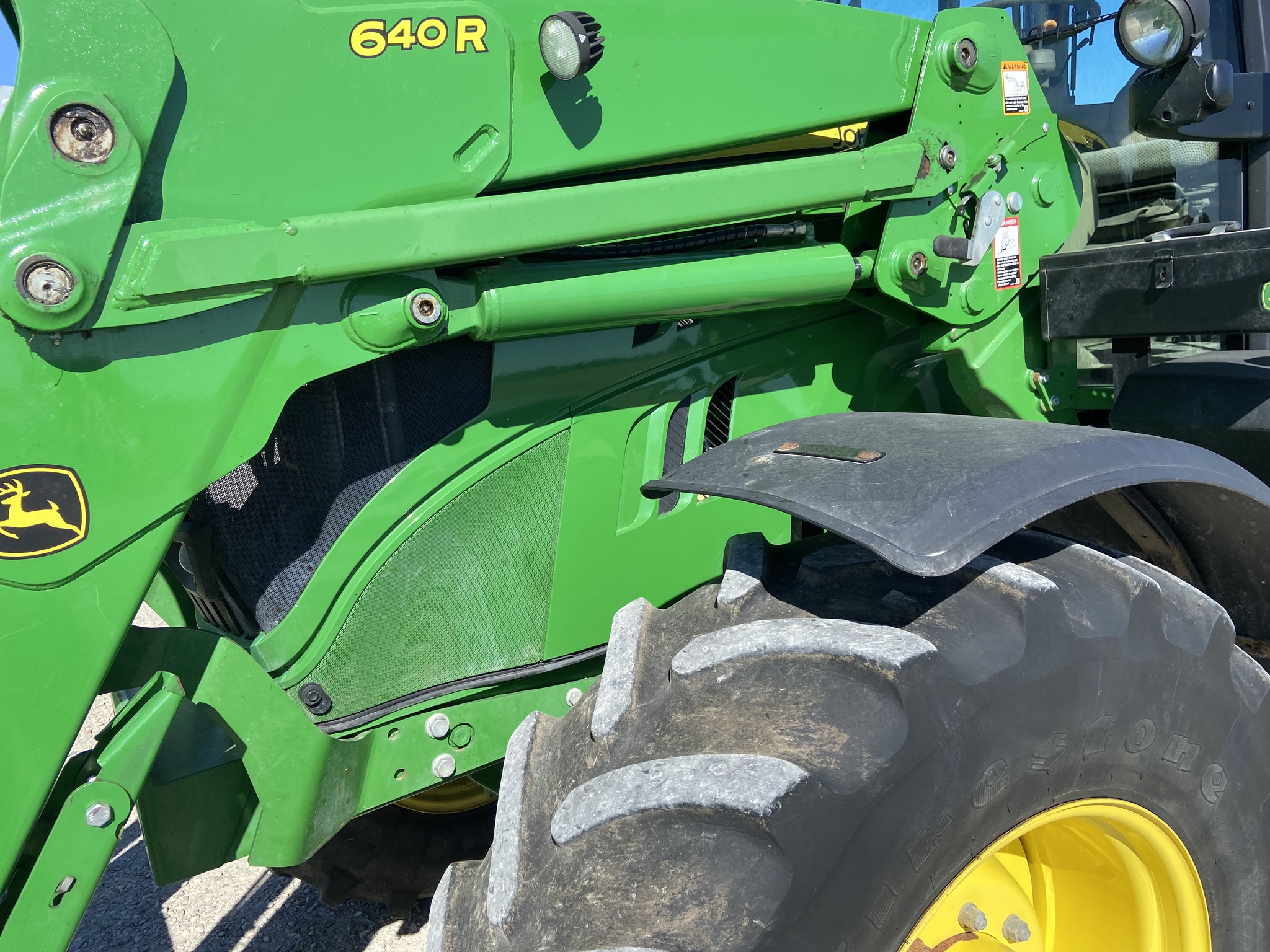 2021, MFWD, 155ENG HP, 2200HR, CAB, JD 640R LDR, 96"BKT, 40KPH, 20/20 SPD, POWER REV, LH REV, 420/85R28, 480/85R42, CAB SUSP, AUTOTRAC READY, 3 REMOTES, 540/1000 PTO, CAT 2-3PT HITCH, RADIO, STANDARD PANORAMA LIGHT PKG, INSTRUCTOR SEAT, REAR WIPER, FOOT THROTTLE, TURNABLE FR FENDERS