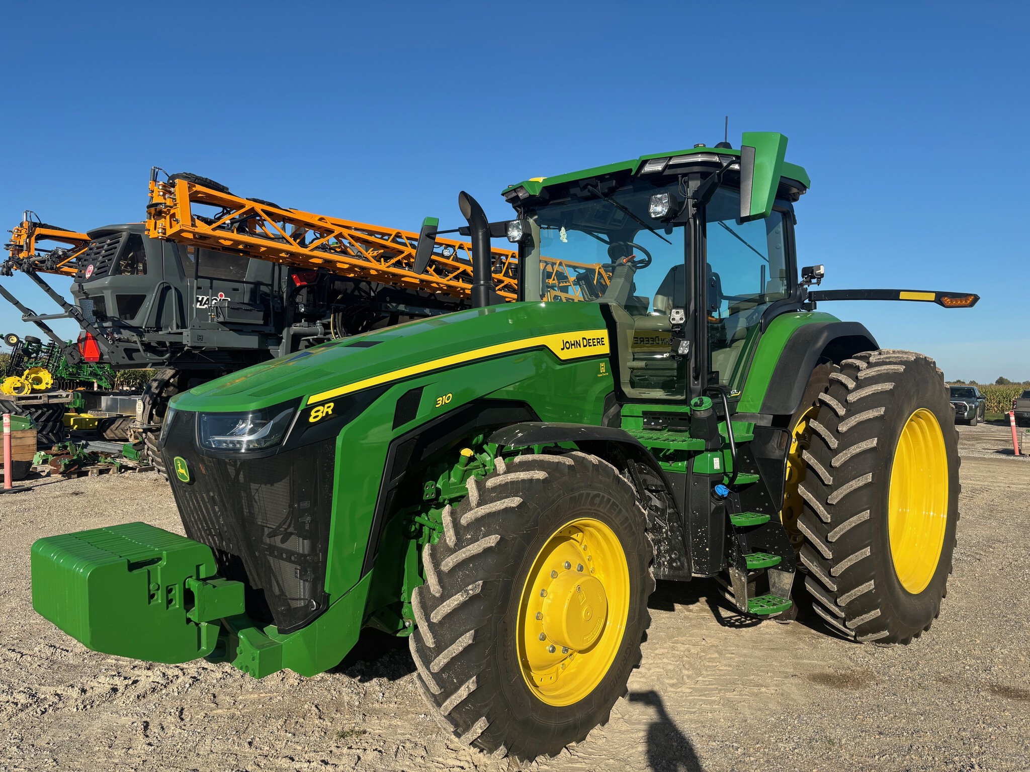 2024, MFWD W/SUSP, 310ENG HP, 280HRS, CAB, 50KPH, 23SPD, E23, LH REV, 118"R&P AXLE CAST CTR, 420/85R34, 480/95R50, FRONT DUALS, AXLE DUALS, GEN.5 COMMAND CTR, JD LINK CAPABLE, JD LINK ACT, SF7000/7500 INTEGRATED RECEIVRE, CAB SUSP, 5 REMOTES, 85cc+35cc HYD SYSTEM, 1000RPM-1 3/4PTO, CAT 3-3PT HITCH, PREM PANORAMA LED LIGHTS, 2-1400LB WHL WEIGHTS, INSTRUCTOR SEAT, TOOL BOX, LEATHER TRIM, SAT RADIO & BLUETOOTH, REAR WIPER, TELESCOPIC MIRRORS, ELECT ADJ MIRRORS, FOOT THROTTLE, FRONT BASE WEIGHT, TURNABLE FRONT FENDERS, REAR FENDER EXT, BLOCK HEATER, DRAWBAR CLEVIS, TRAILER BRAKES, SELLING ASI RECONDITIONED, FACTORY WARR 23OCT26