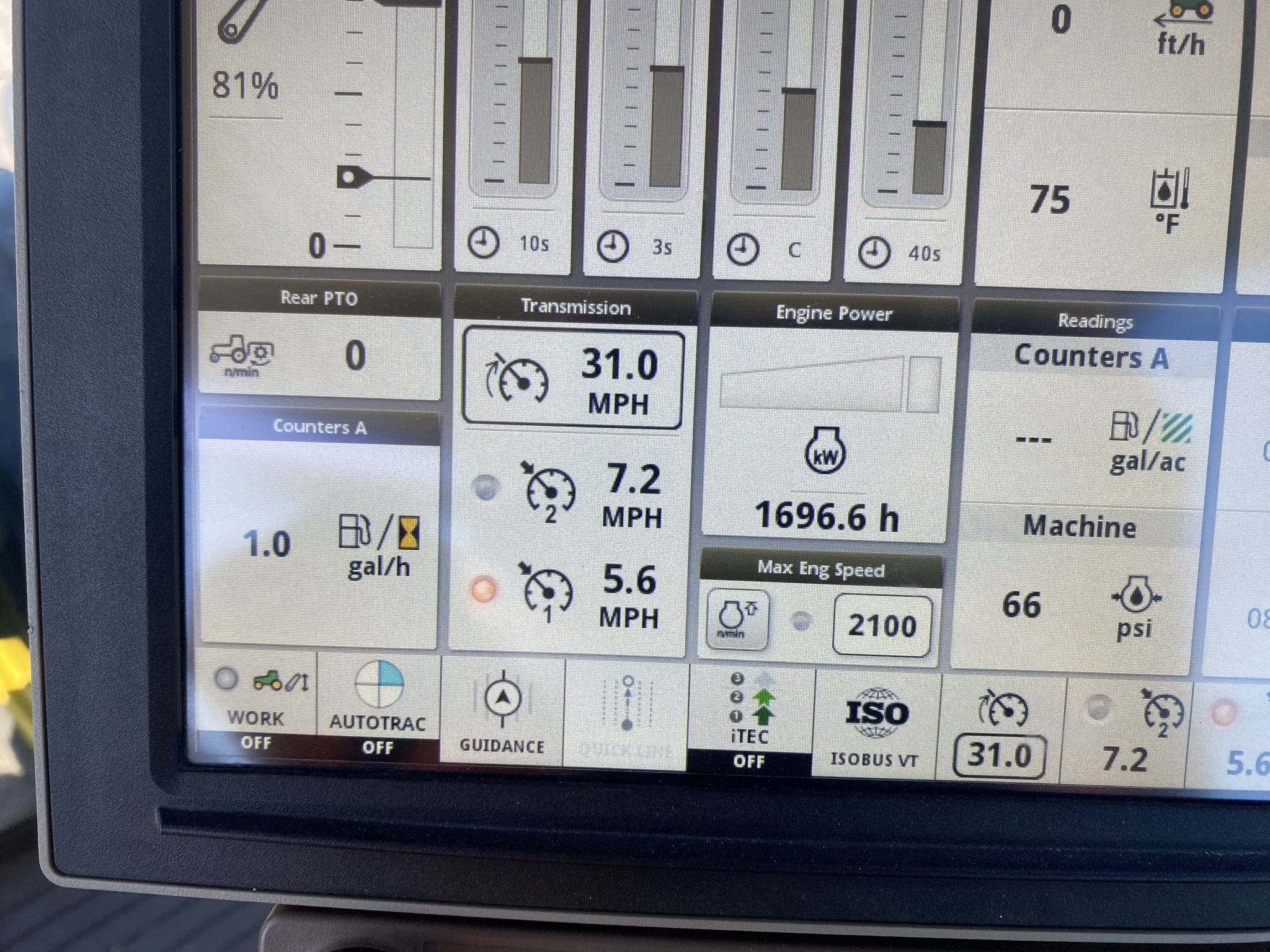 2019, MFWD W/SUSP, 215ENG HP, 1710HR, CAB, 50KPH, AUTOPWR IVT COMMAND PRO, RH REV, 110" R&P AXLE-, CAST CTR, 420/85R34 70%, 480/80R50 70%, AXL DUALS, FRONT DUALS, CAB SUSP, AUTOTRAC ACTIVATION, GEN.4 COMMAND CTR, 10" TOUCH COMMAND CTR, 4 ELECTRONIC REMOTES, 540/1000 PTO, RADIO, REM 3PT FENDER CONTROL, PREM LED LIGHT PKG, 8 SUITCASE WEIGHTS, 2-450 WHEEL WEIGHTS, ELECT ADJ MIRRORS, FRONT FENDERS, REAR FENDER EXT, SELLING FIELD READY