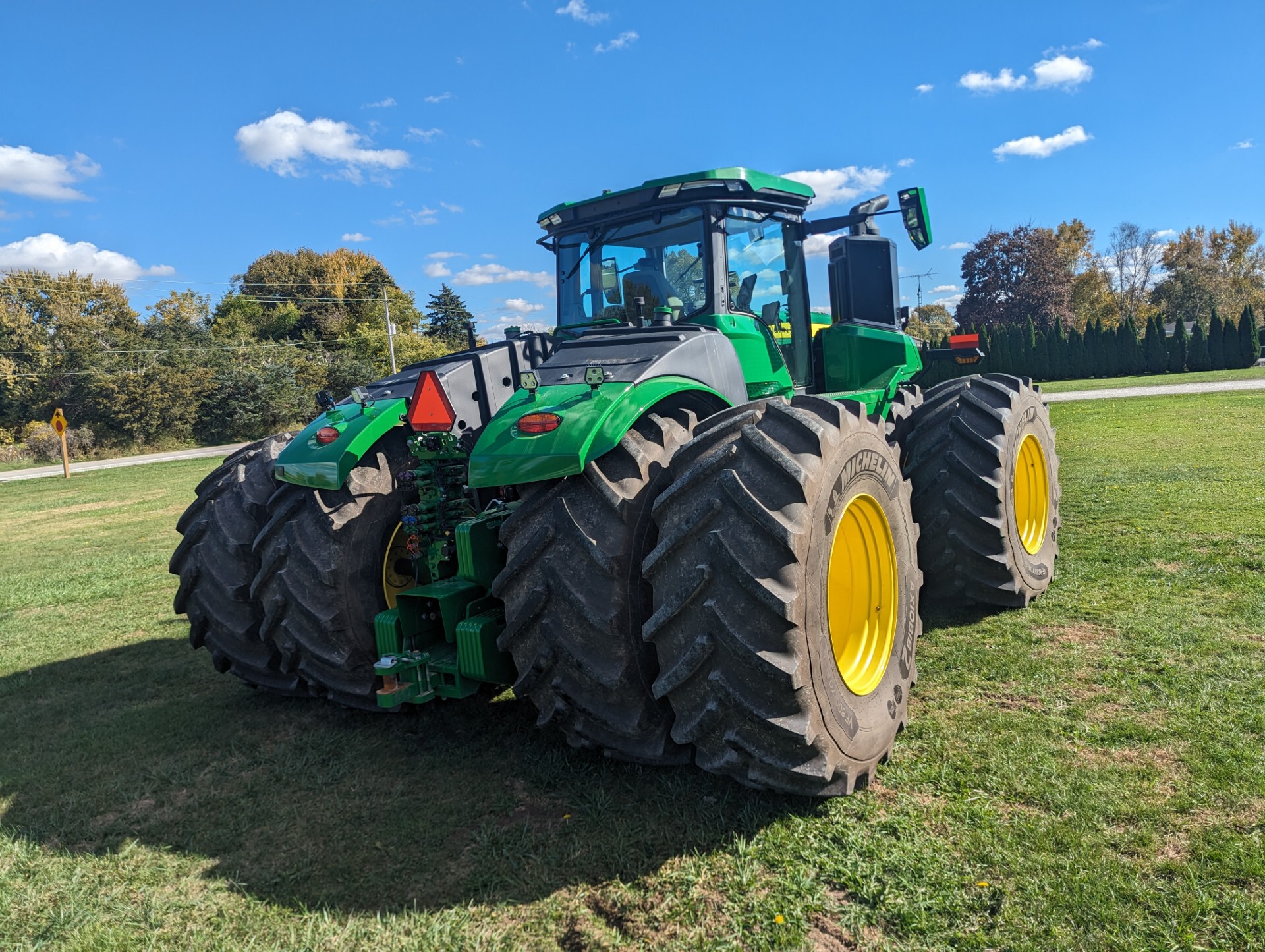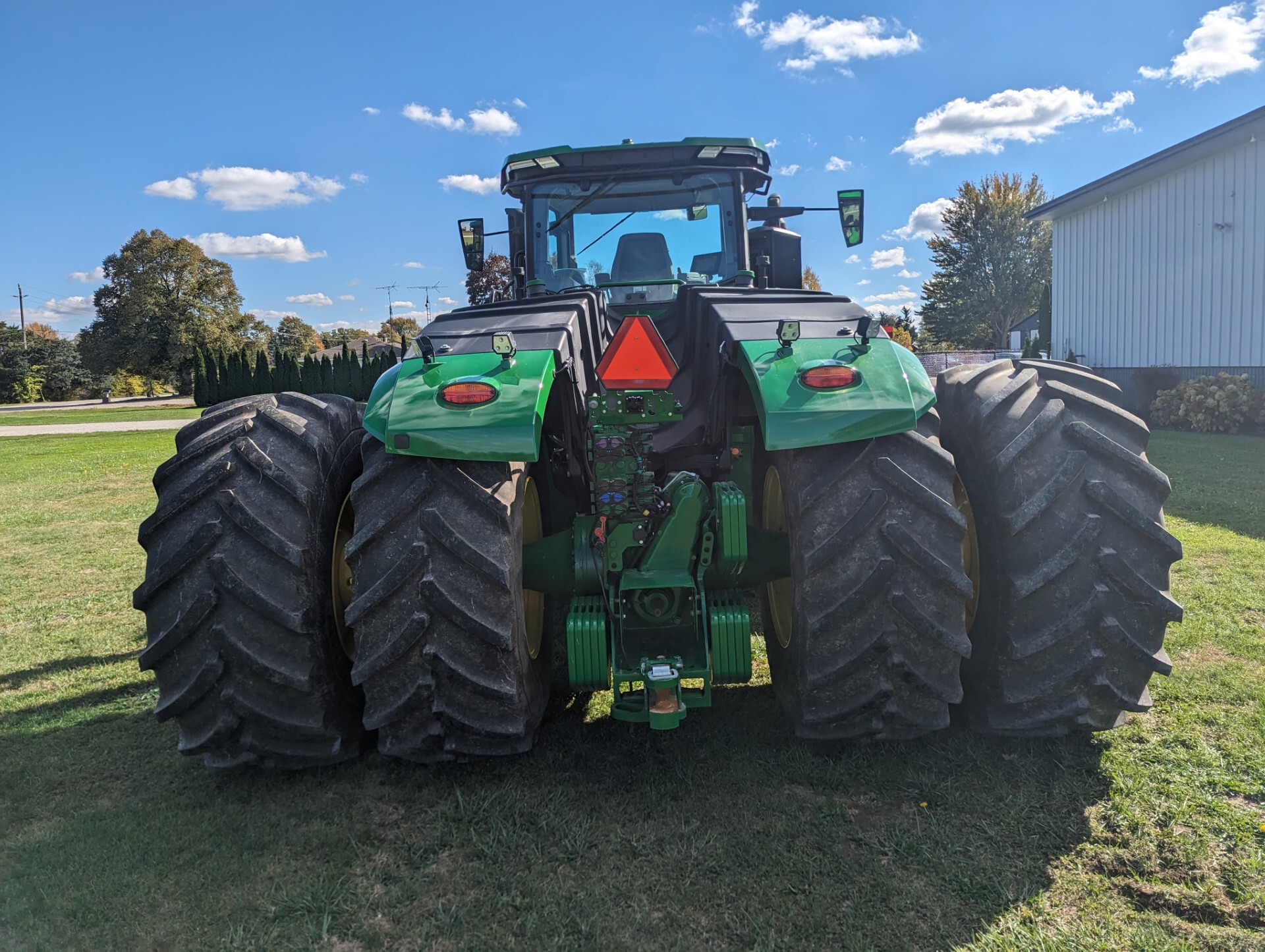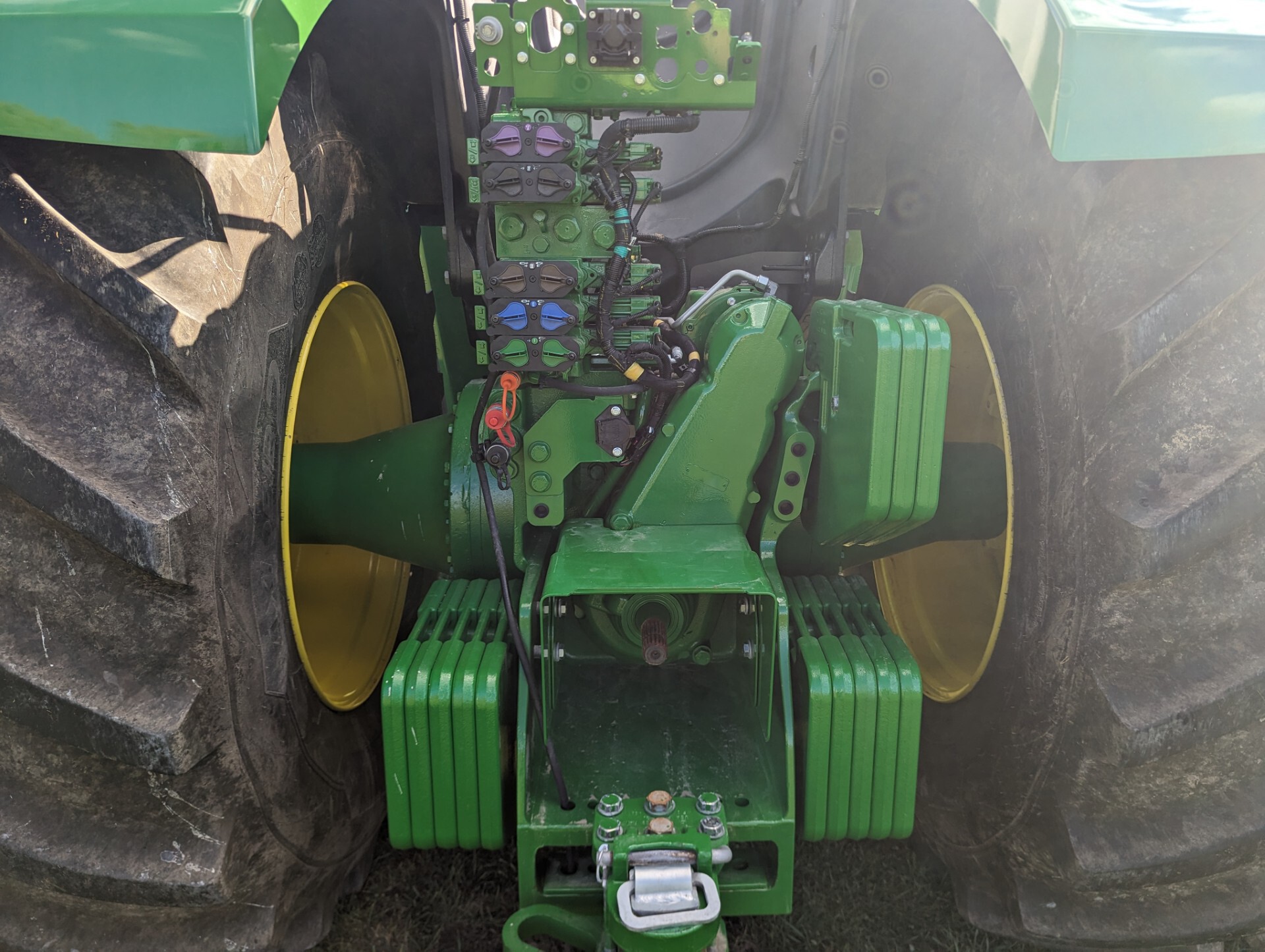 2024, 4WD, 540ENG HP, 252HRS, PREM CAB, 40KPH, 18F/6R SPD, E18, BAR AXLE, VF800/70R38 90% MI, VF800/70R38 90% MI, AXLE DUALS, AUTOTRAC READY, AUTOTRAC ACTIVATION, GEN.4 COMMAND CENTER, 10" TOUCH COMMAND CENTER, JD LINK CAPABLE, 5 ELECTRONIC REMOTES, AUX HYD CONNECTION, 85cc+35cc HYD SYSTEM, 1000RPM-1 3/4 PTO, NO 3PT HITCH, EXTREMITY WARNING LIGHTS, PREM LED LIGHT PKG, ACTIVE SEAT SUSPENSION, INSTRUCTOR SEAT, SAT RADIO & BLUETOOTH, LEATHER TRIM, REAR WIPER, ELECT ADJ MIRRORS, FOOT THROTTLE, FRONT BASE WEIGHT, RADAR, BLOCK HEATER, CORNERPOST EXHAUST, DRAWBAR CLEVIS, DBAR WT BRKT 13 WGTS, FACTORY WARRANTY UNTIL 25OCT26, SELLING ASI RECONDITIONED