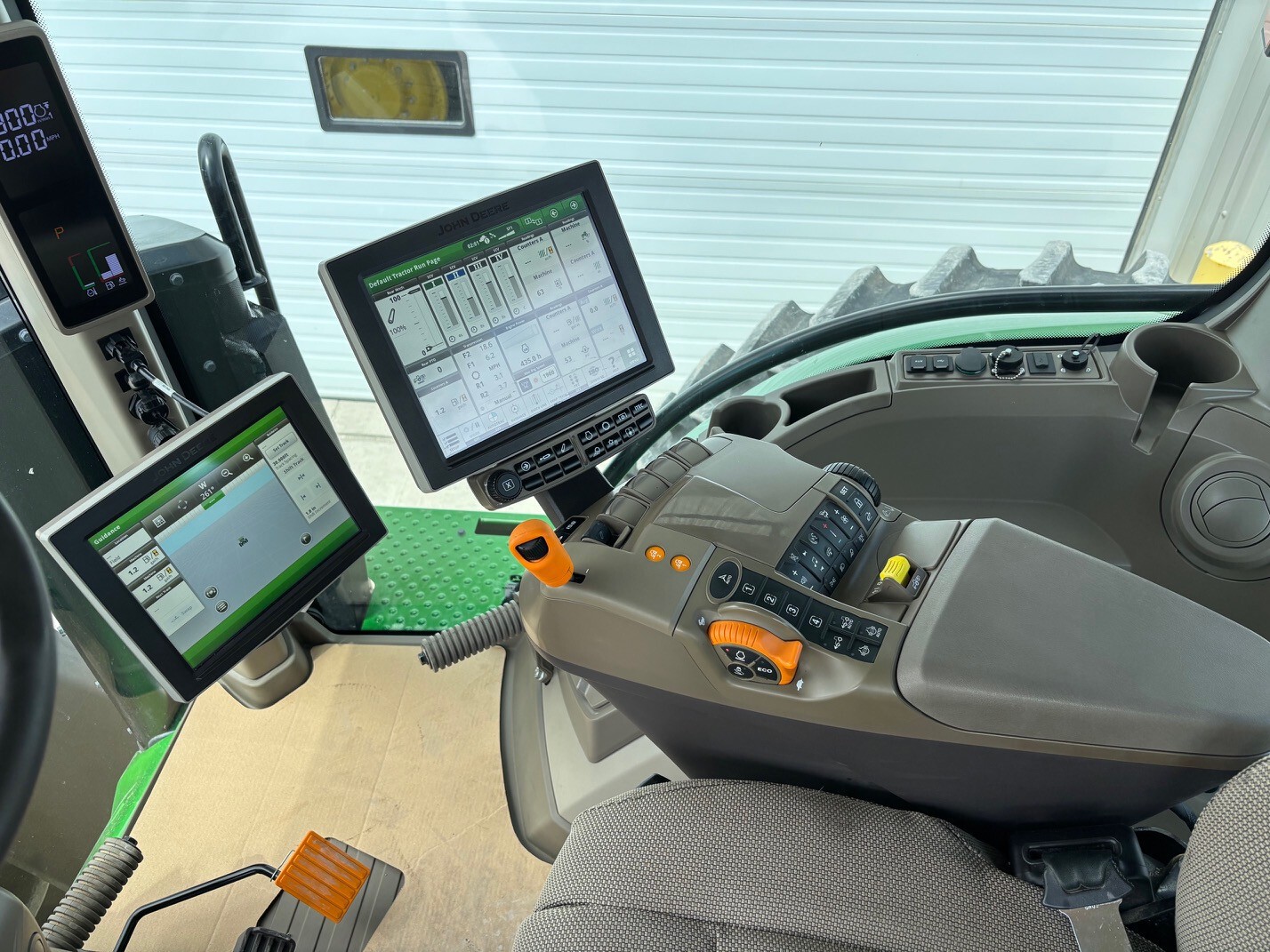 2023, MFWD W/SUSP, 250ENG HP, 600HRS, PREM CAB, 50KPH, E23, LH REV, 118" R&P AXLE W/CAST CENTER, 480/70R34 FS, 480/80R50 FS, AXLE DUALS, 4 REMOTES, AUTOTRAC READY, AUTOTRAC PREMIUM ACTIVATION, GEN.4 COMMAND CTR, 10" TOUCH COMMAND CENTER, JD LINK CAPABLE, JD LINK ACTIVATION, 540/1000 PTO, AUX HYD CONNECTION, CAT 3-3PT HITCH, AIR SEAT, PREM LED LIGHT PKG, FOOT THROTTLE, TRAILER BRAKES, FRONT BASE WEIGHT, TURNABLE FRONT FENDERS, SELLING ASI RECONDITIONED
