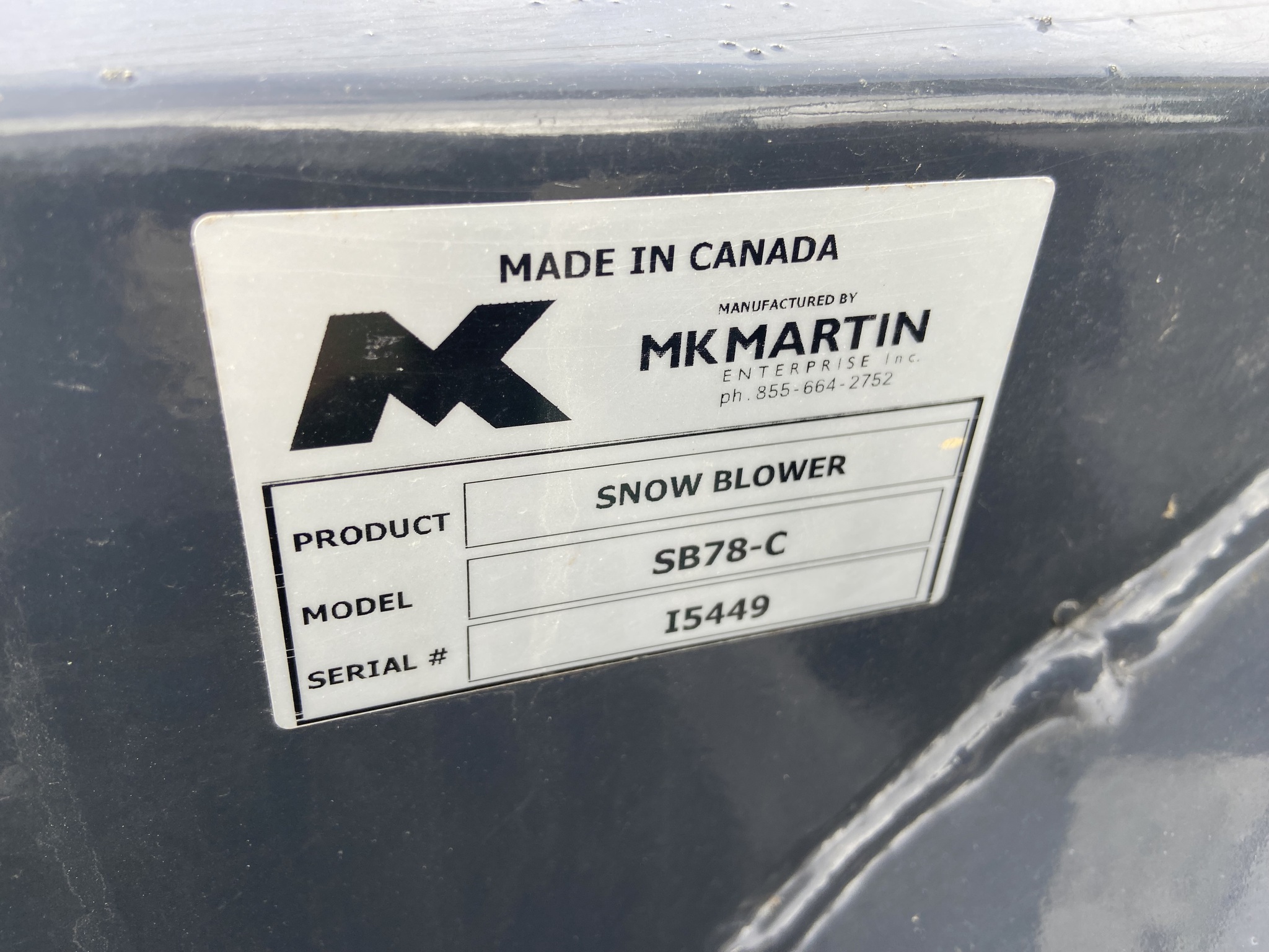 MK MARTIN SB78-C, 78" 3PT SNOWBLOWER, 540 PTO, SINGLE AUGER, HYD ORBITAL MOTOR ROTATION, CHUTE DEFLECT W/CYL, 5 BLADE FAN, ADJ SKID SHOES