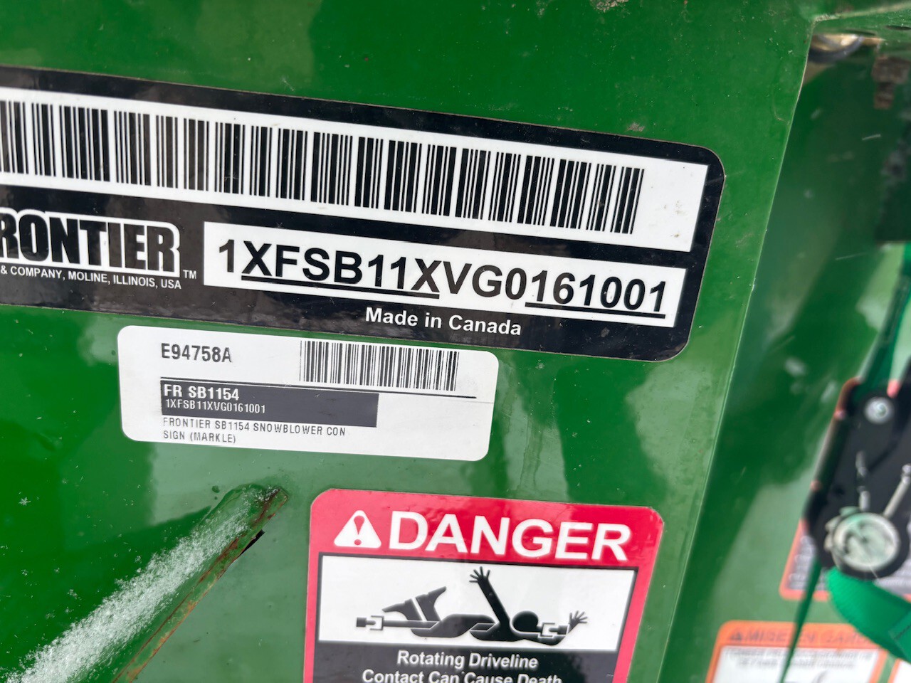 2016, FRONTIER, CONSIGN, 54" 3PT SNOWBLOWER, SINGLE AUGER, 540 PTO, MANUAL HOOD ROTATION, MANUAL CHUTE DEFLECTOR, 4 BLADE FAN, 7" FAN DIA, 24" FAN DEPTH, ADJUSTABLE SKID SHOES