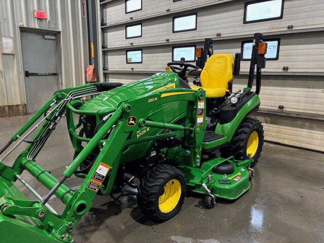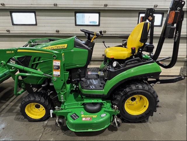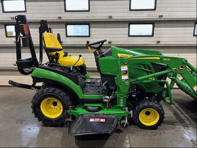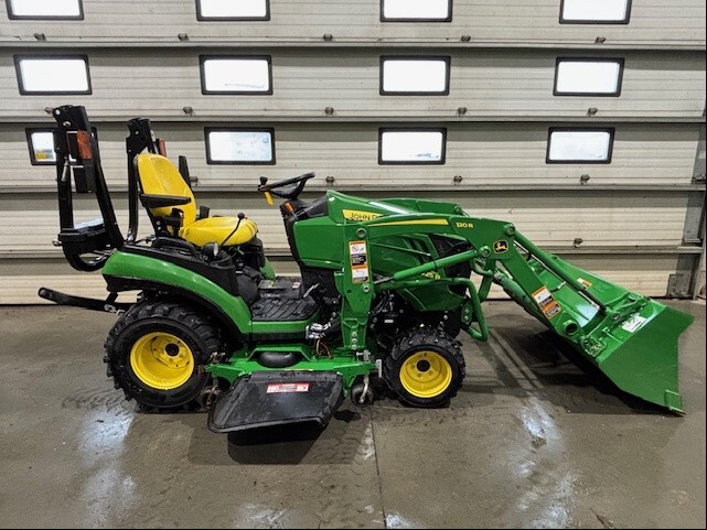 2018, 25ENG HP, 220HR, HYDRO, R4 IND, OOS, MID LDR VALVE, 120R QUICK-TACH LDR, HOOD GUARD, 53" PIN-ON BKT, W/MID PTO, 60D, AUTOCONNECT PTO, MECH DECK LIFT, DIESEL, JD 54" SNOWBLOWER, QUICK HITCH & PTO, INSPECTED & FIELD READY