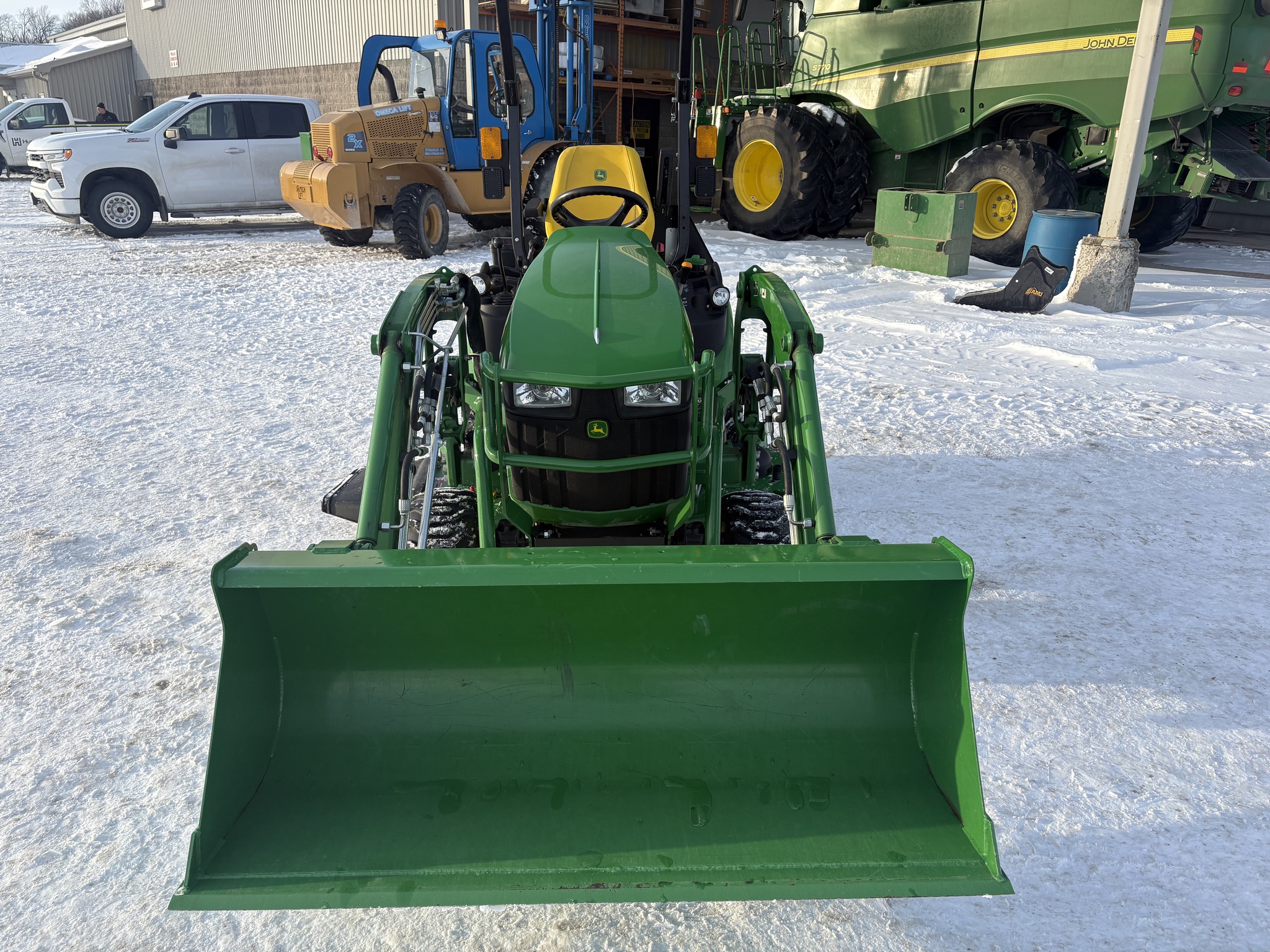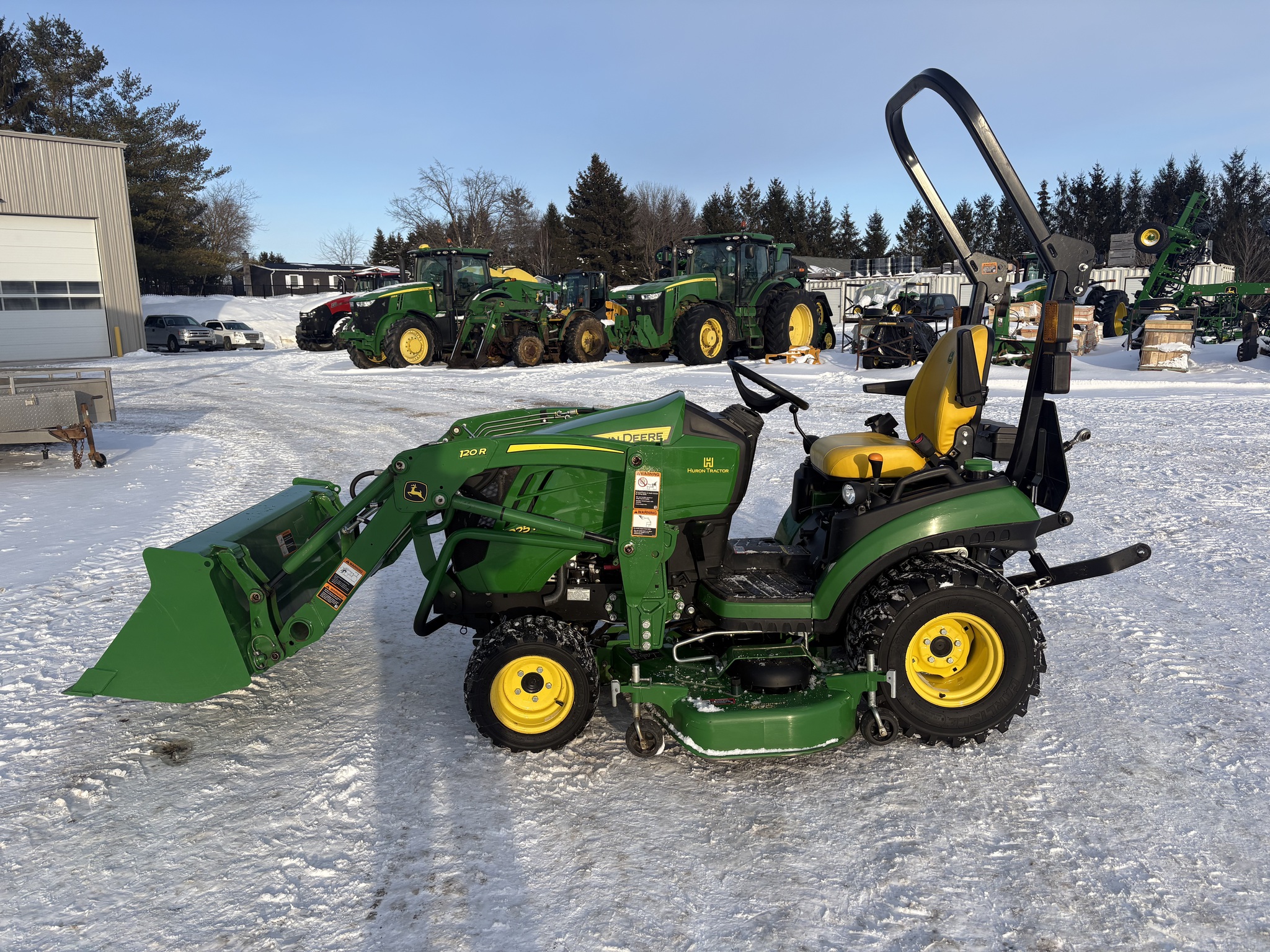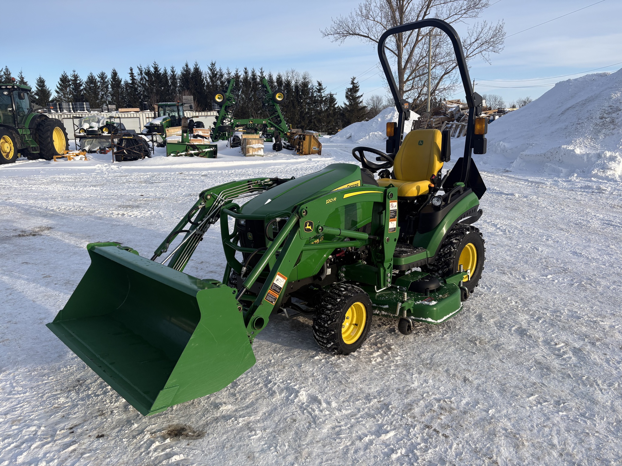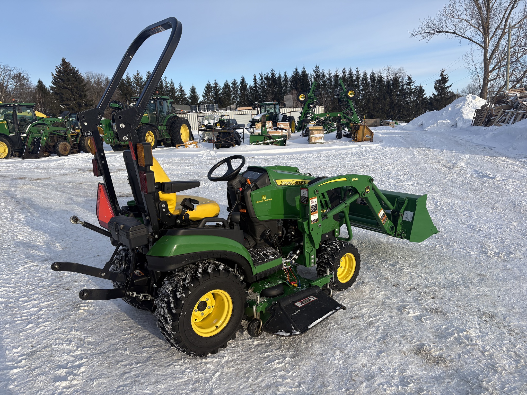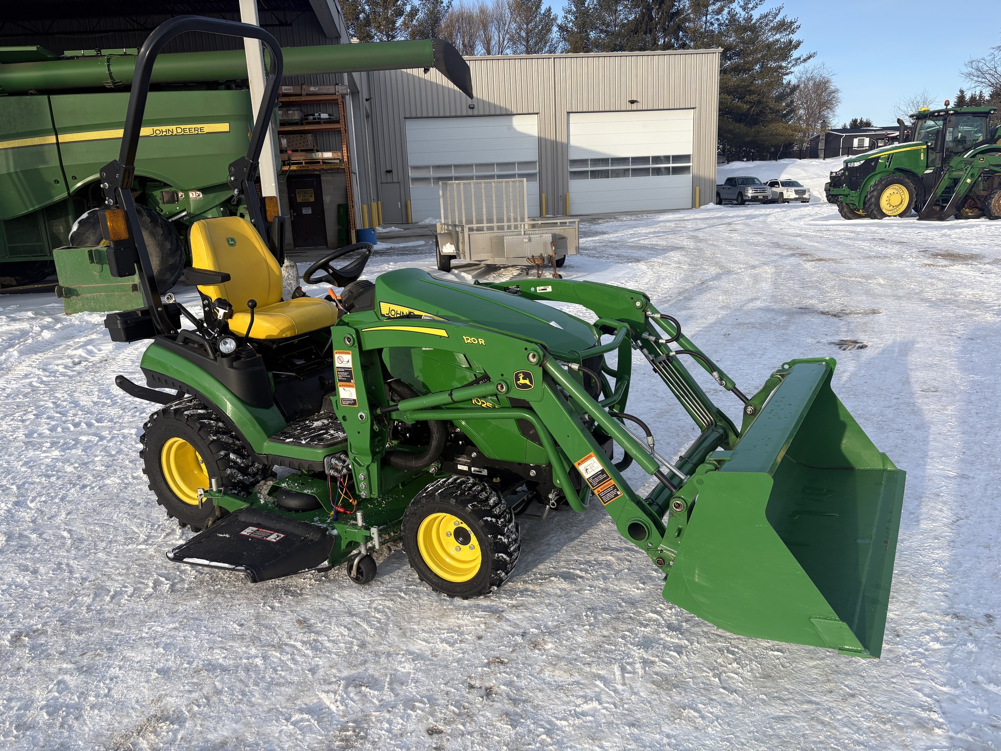 2022, 4WD, 25ENG HP, 250HR, 2 SPD, OOS, FOLD ROPS, HYDRO, 18x8.50-10 80%, 26X12.12 80%, R3 TURF, MID LDR VALVE, JD 120R QUICK-TACH LDR, 53" BKT, QUICK-TACH BKT, HOOD GUARD, W/MID PTO, JD 60" MWR, AUTOCONNECT PTO, MECH DECK LIFT, DIESEL, SUSPENSION SEAT, CRUISE CONTROL, LESS REAR REMOTES, INSPECTED & FULLY SERVICED