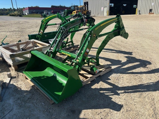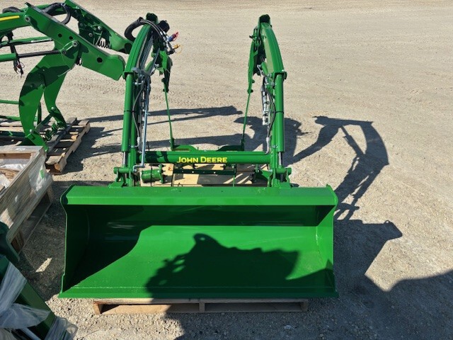 JD 320R LOADER, 61" MATERIAL BUCKET, HOOD GUARD, LOADER FRAMES FOR R3 CAB HOOD TRACTOR, OFF JD 3039R