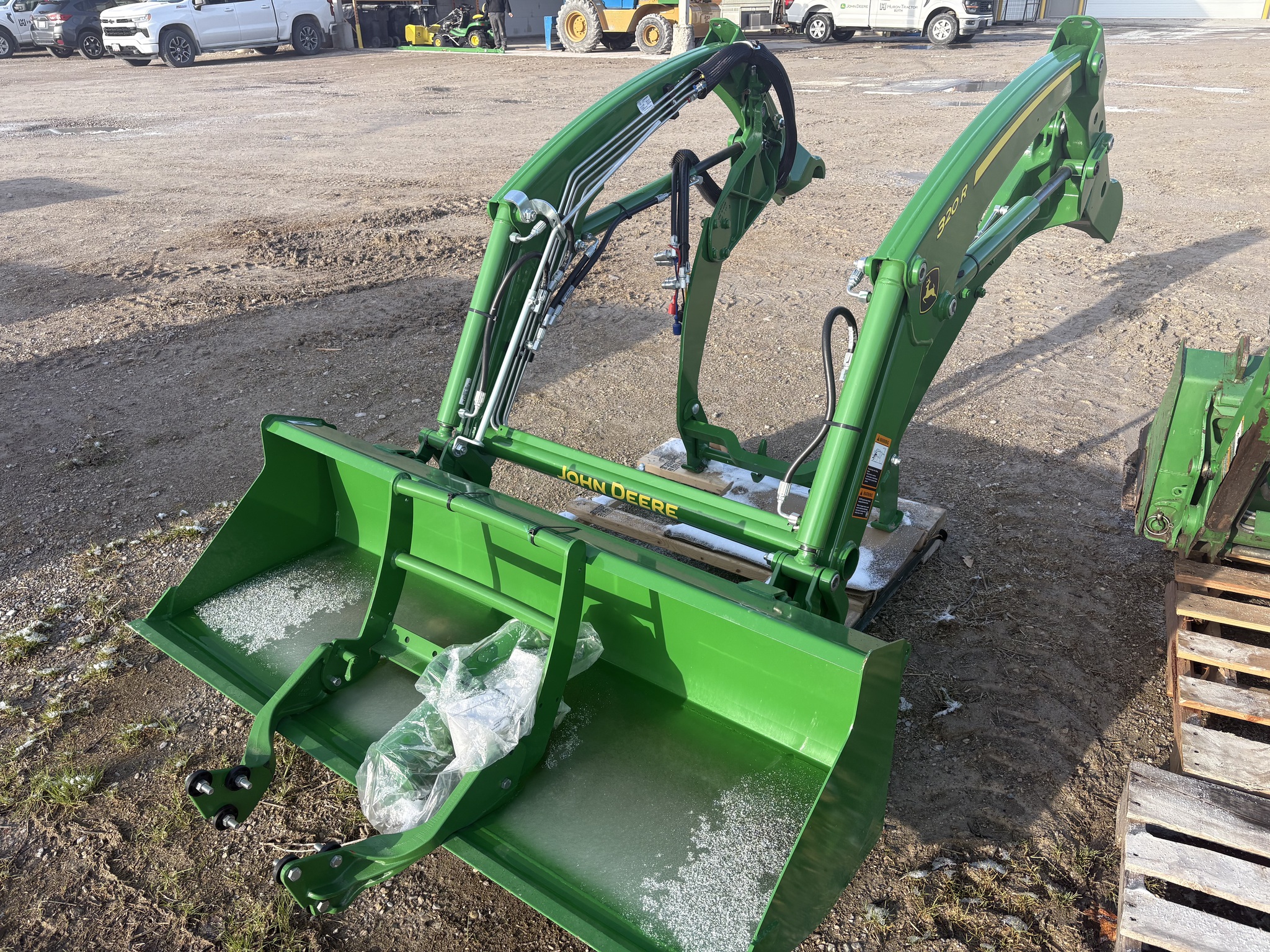 JD 320R LOADER, 61" MATERIAL BUCKET, HOOD GUARD, LESS LOADER FRAMES, NEW TAKEOFF