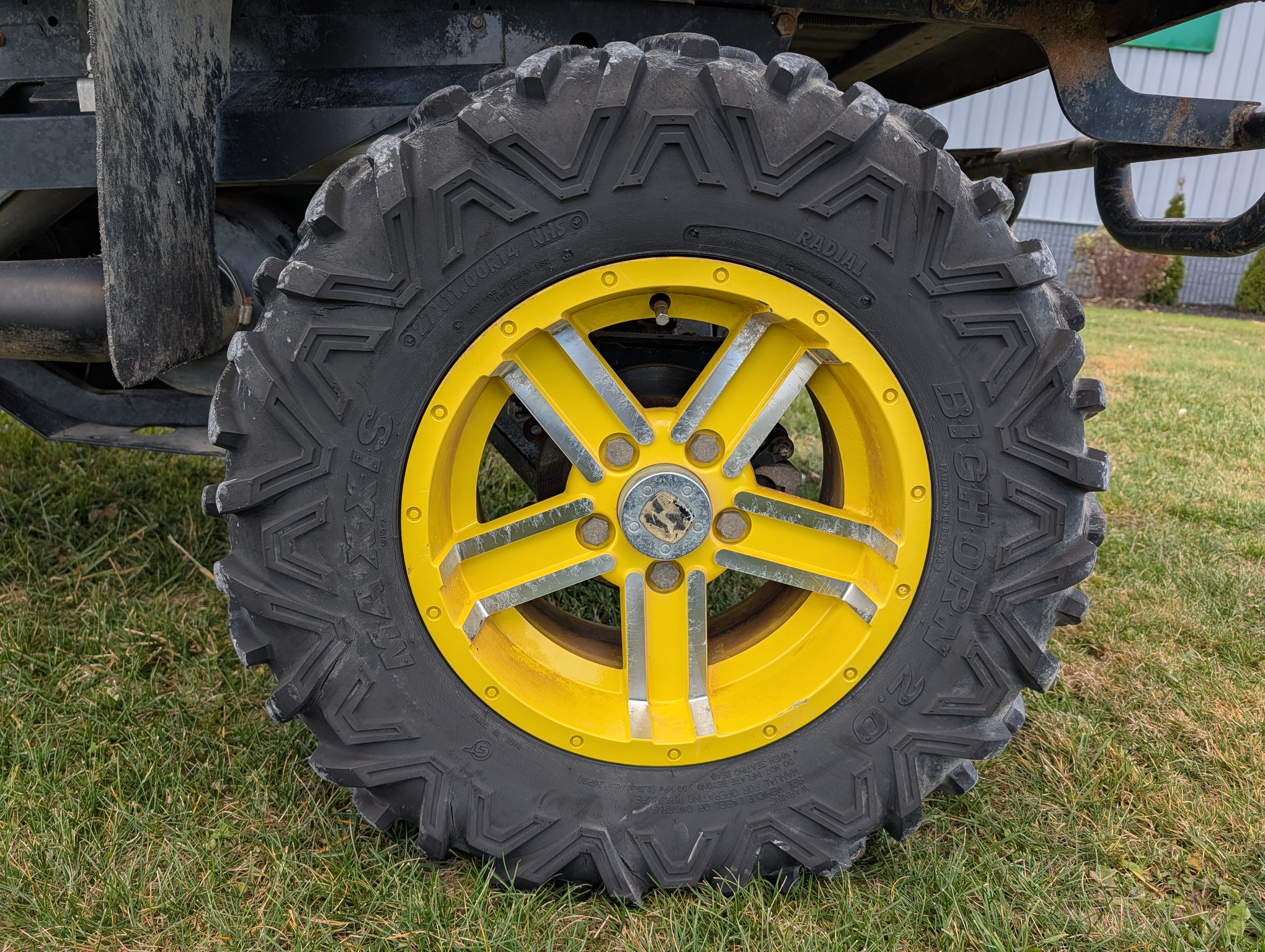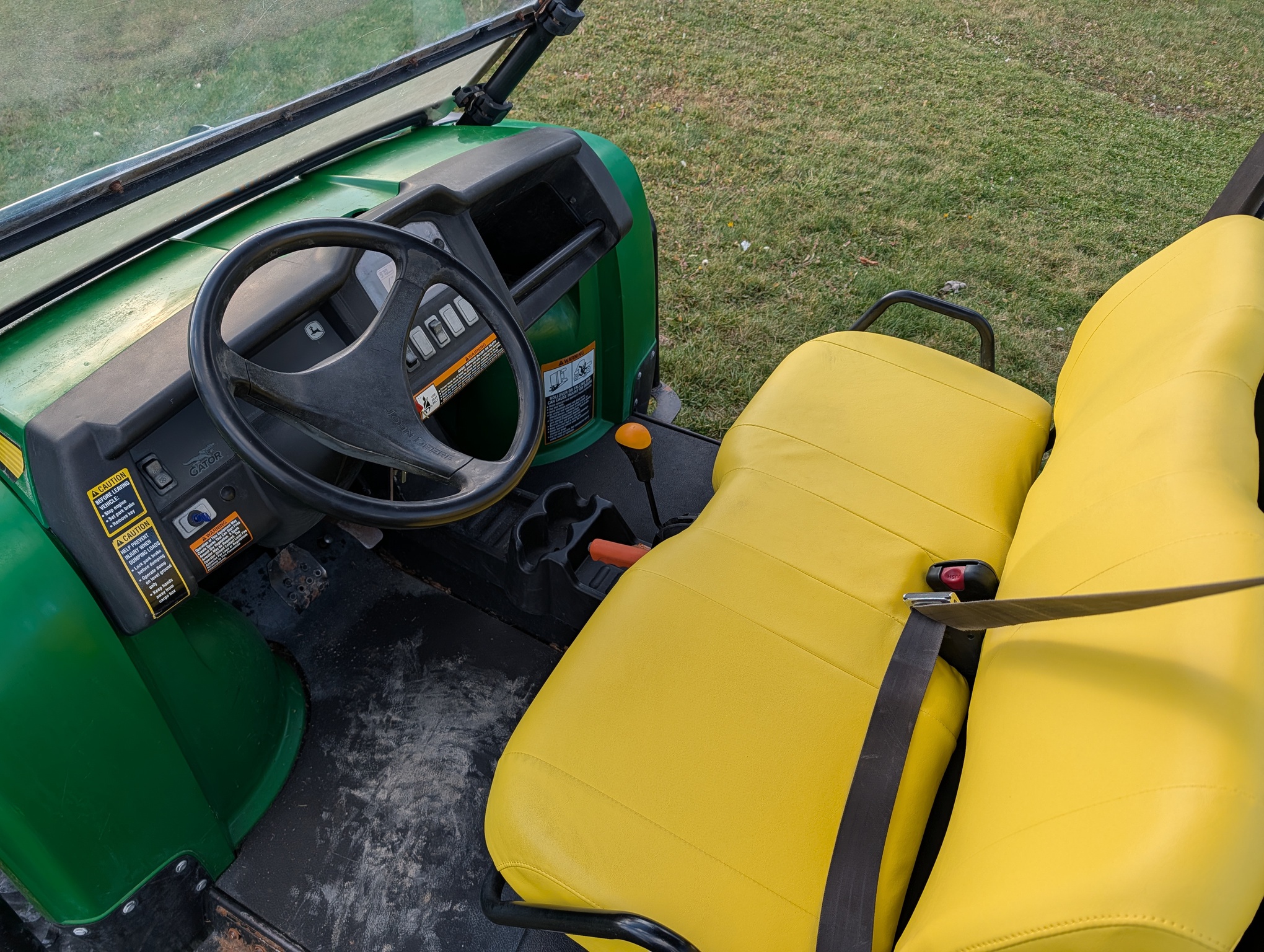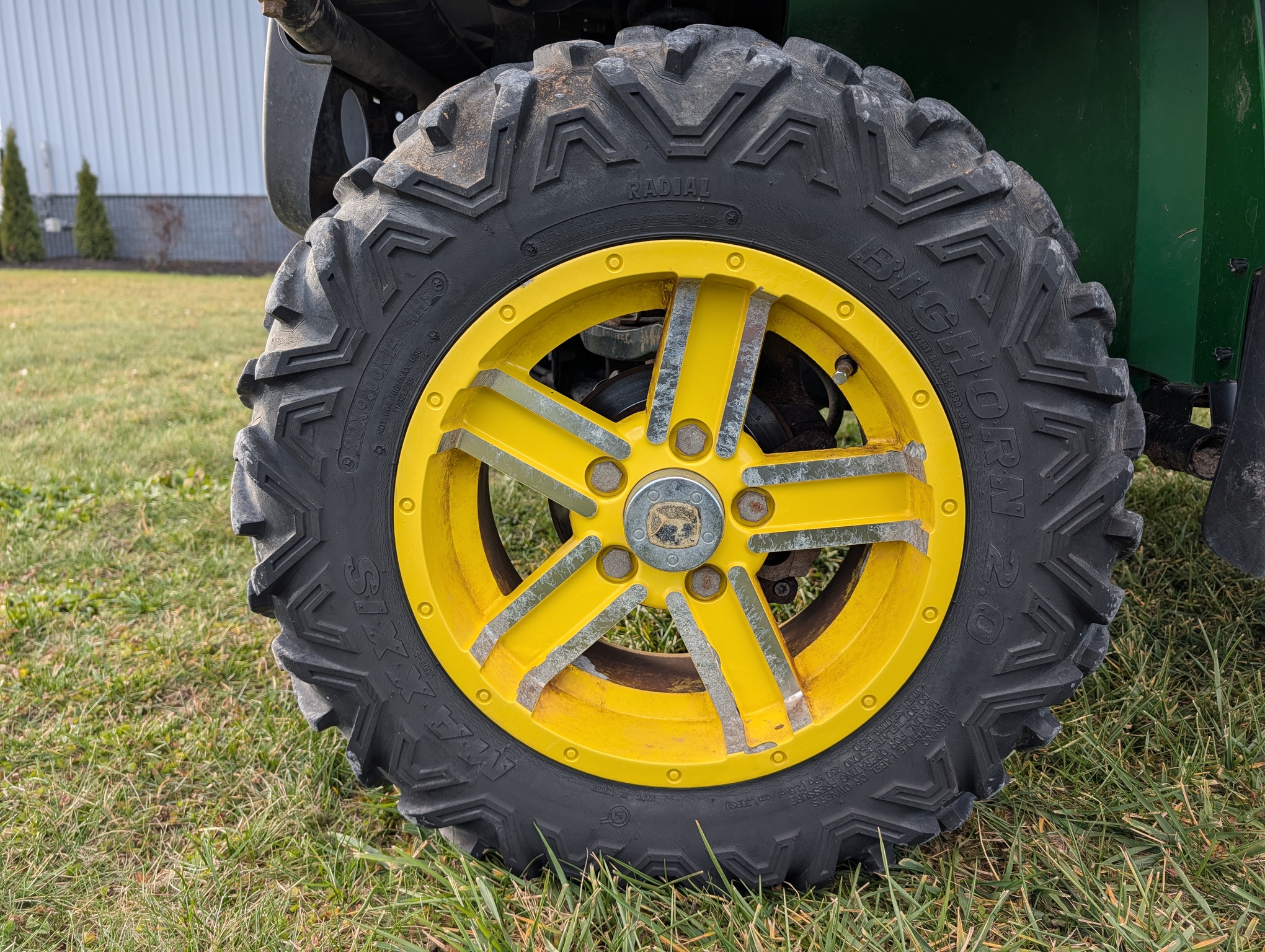 2011, 4x4, 50HP, 1170HRS, KAWA, AIR COOL, GAS, 2 SPD CVT, POWER STEERING, POWER BOX LIFT, POLY ROOF, 3 PASSENGER, BENCH SEAT, WINDSHIELD, HD ALL PURPOSE TIRES 60%, GREEN & YELLOW, INSPECTED & WORK READY