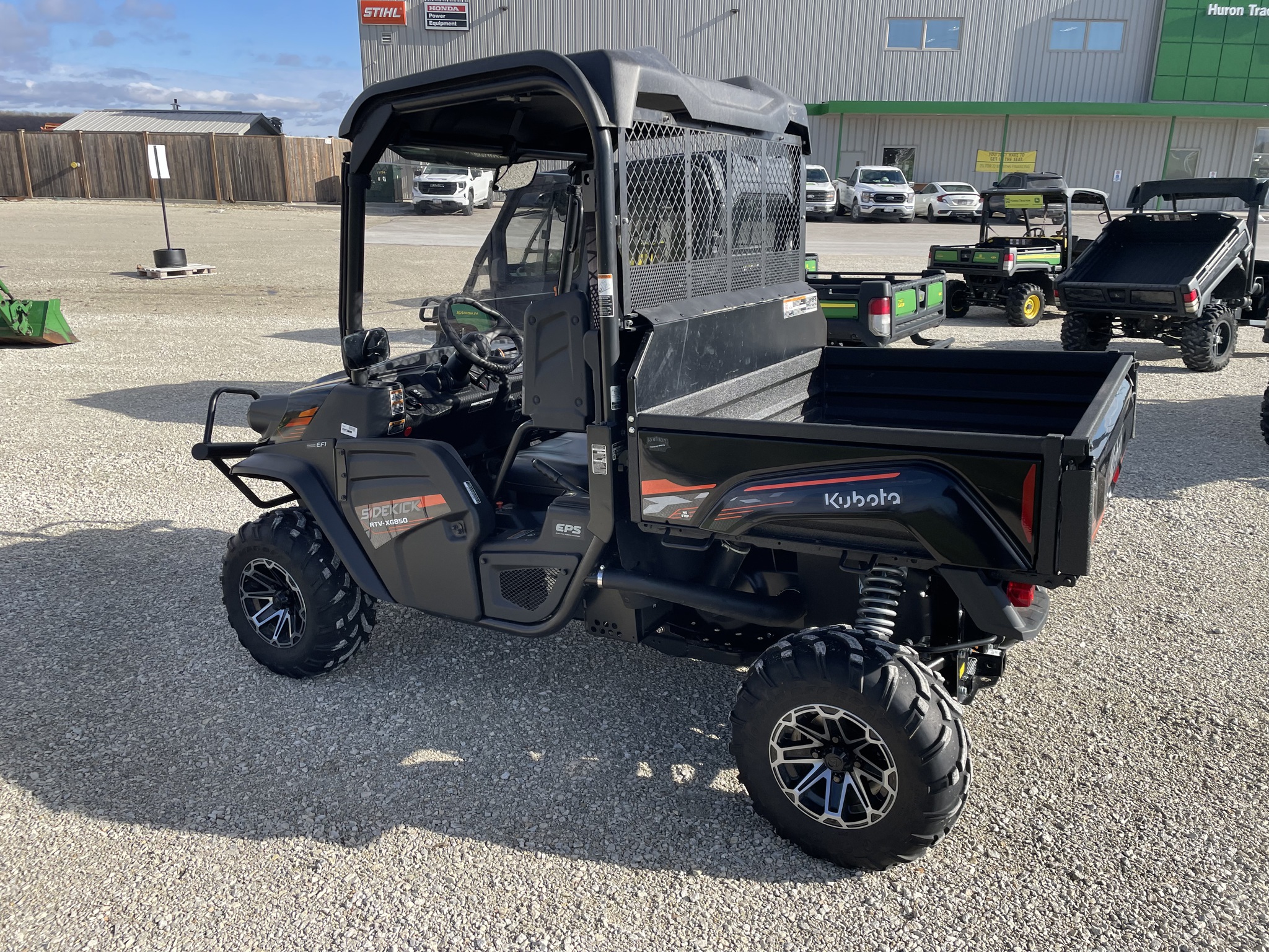 2024, KUBOTA, 4x4, 1750 ODO, 851cc, KUBOTA ENG, 2 CYL, LIQ. COOL, GAS, 2 SPD CVT, PWR BOX LIFT, POLY ROOF, 2 PASSENGER, BENCH SEAT, ALLOY RIMS, KNOBBY TIRES 90%, WINDSHIELD, FRONT BUMPER, MIRRORS, INSPECTED & WORK READY