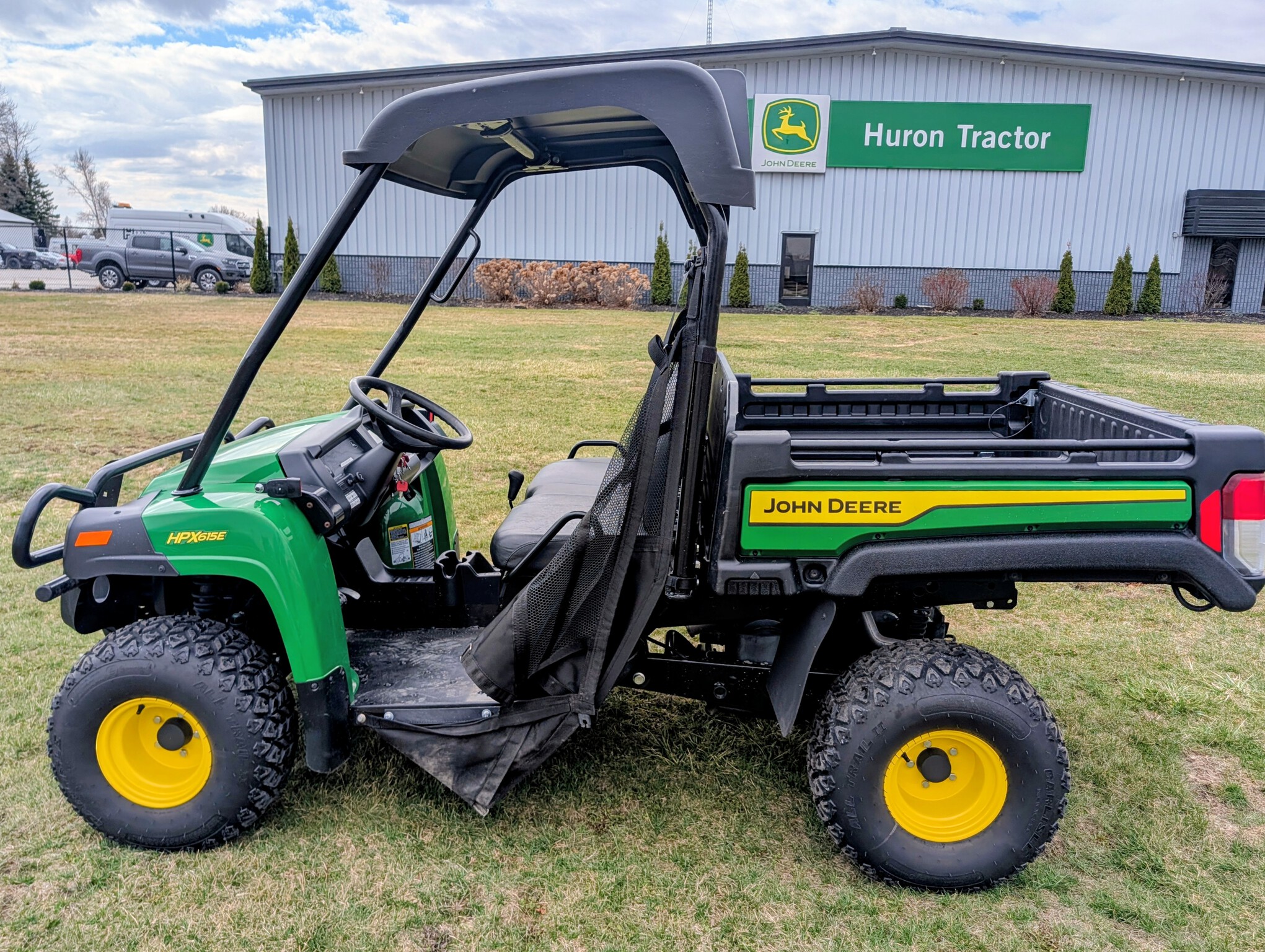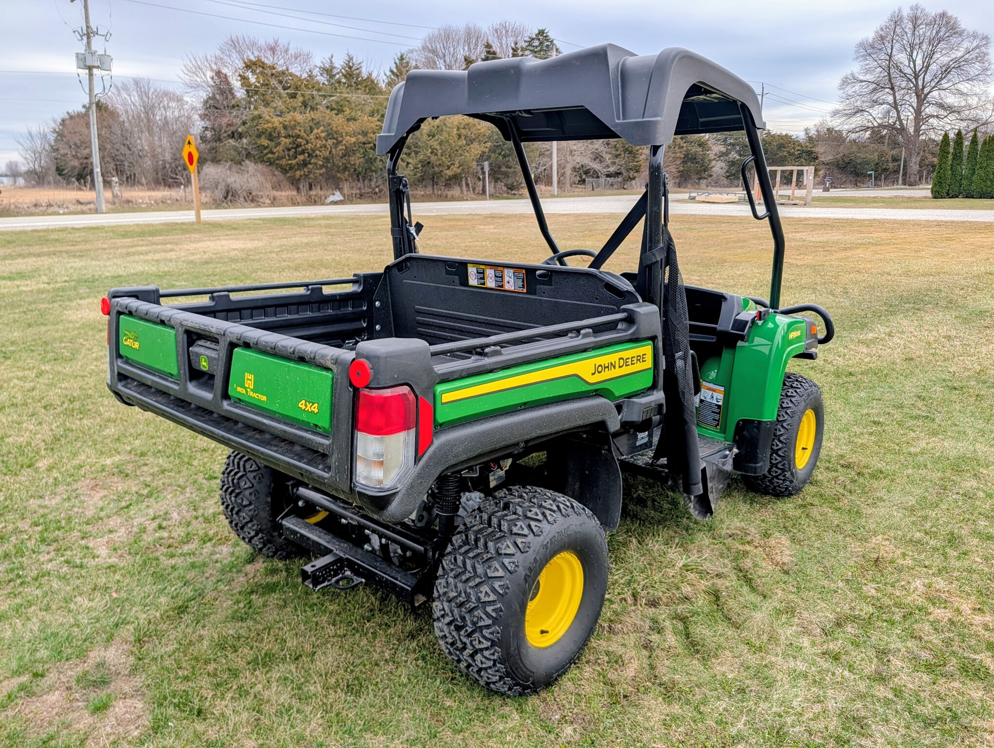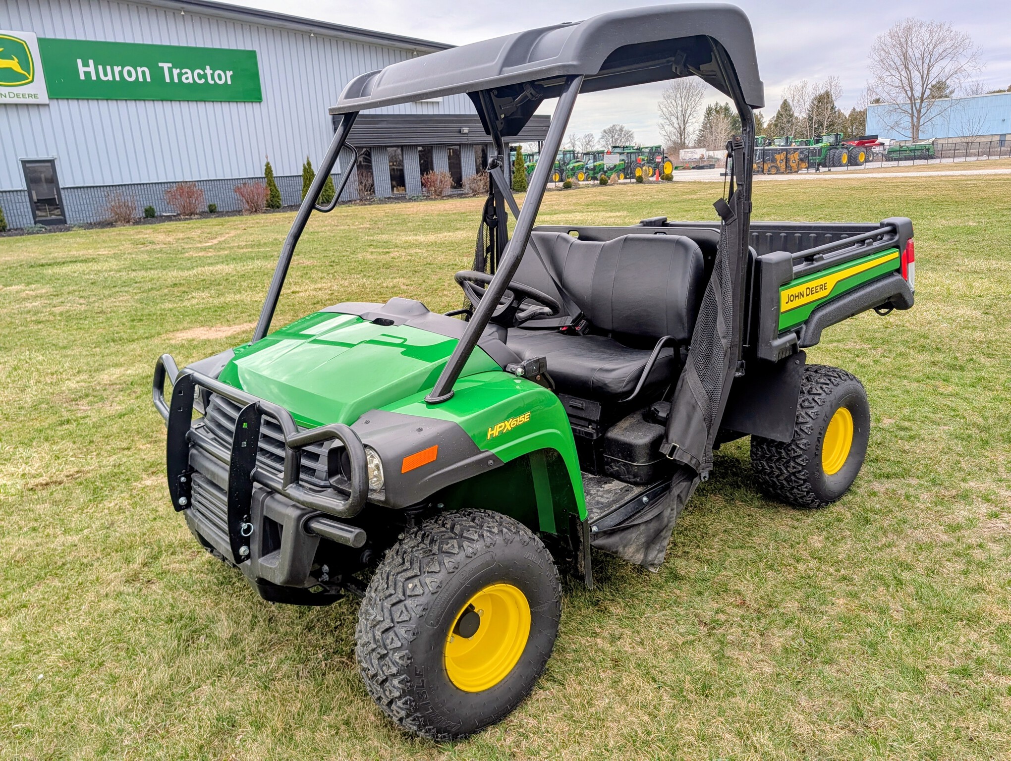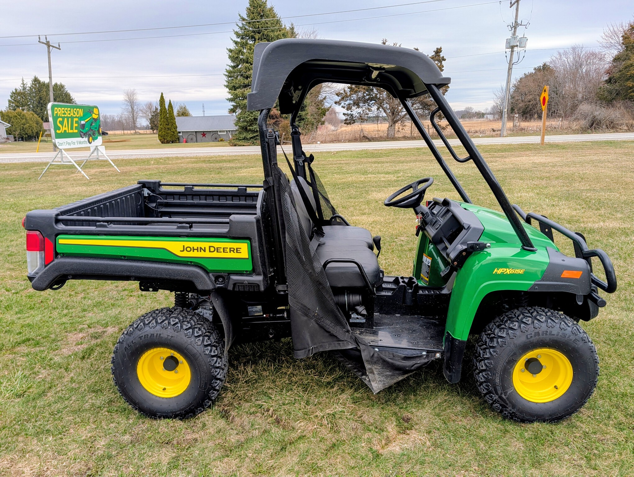 2024, 4x4, 21HP, 617cc, 1 SPD CVT, PWR BOX LIFT, POLY ROOF, ROPS, 2 PASSENGER, BENCH SEAT, HD ALL PURPOSE TIRES, FRONT BRUSH GUARD, BEDLINER, GREEN & YELLOW, INSPECT & FULL SERVICED, FACTORY WARRANTY UNTIL 23APR26