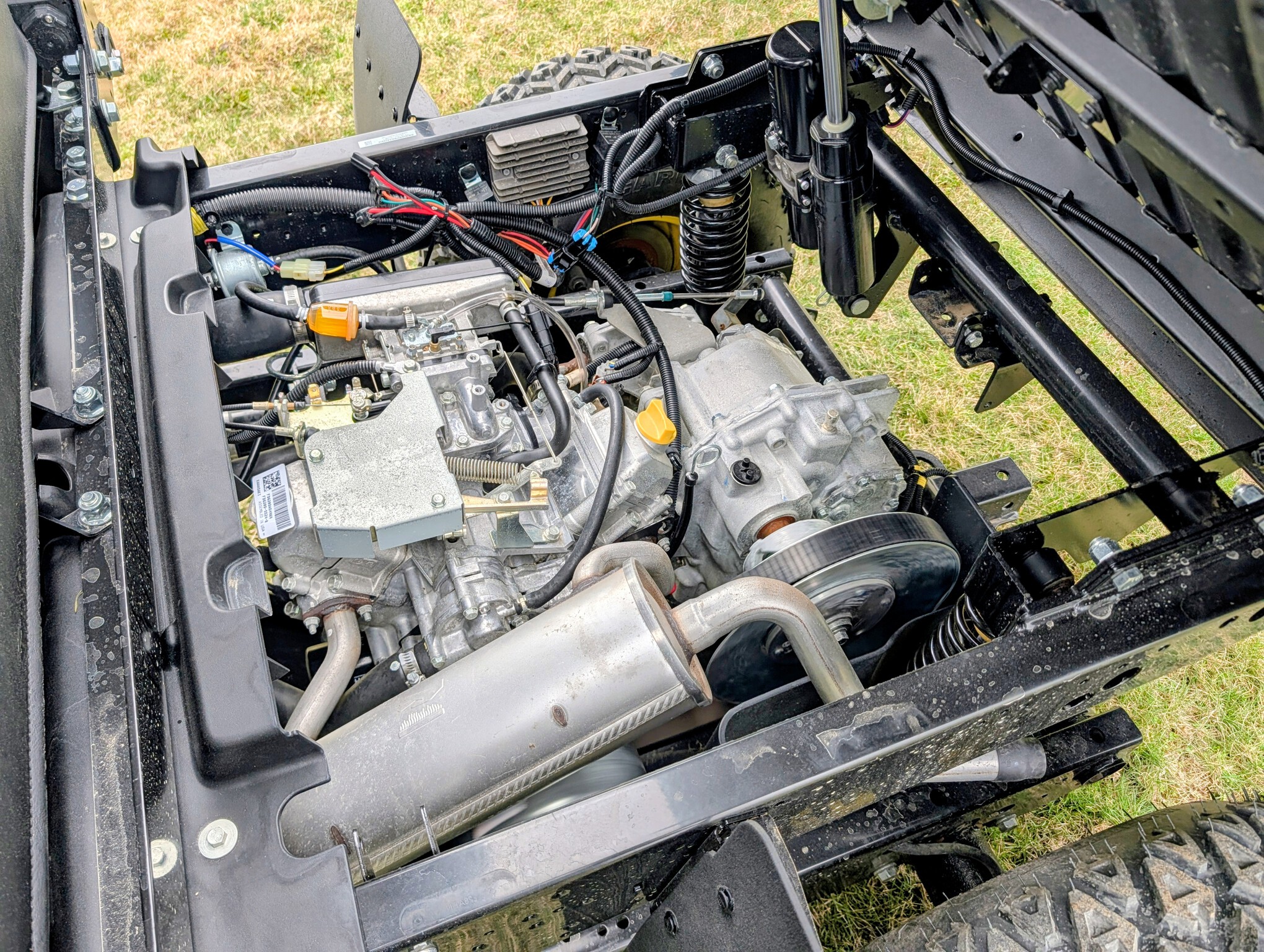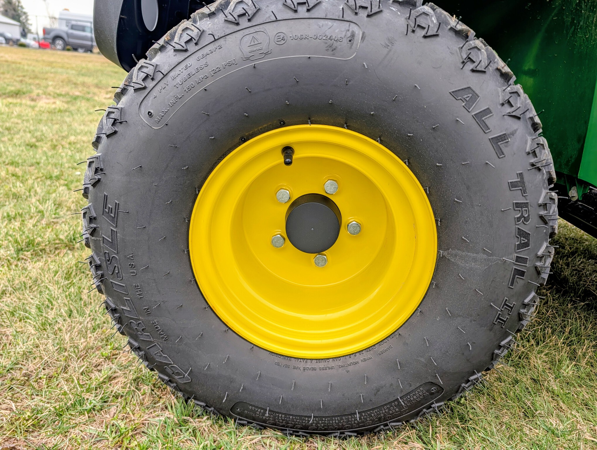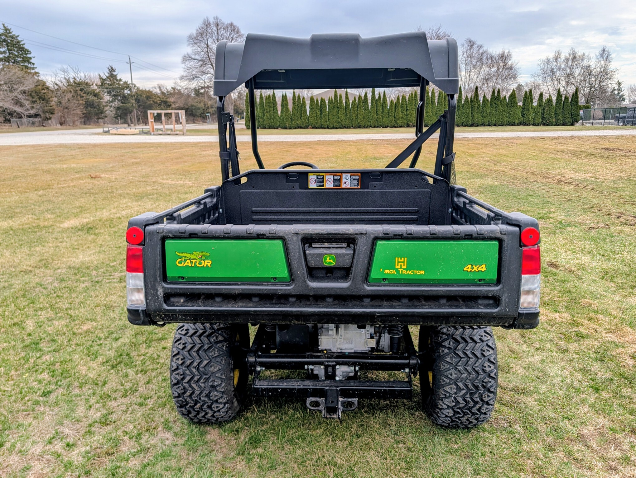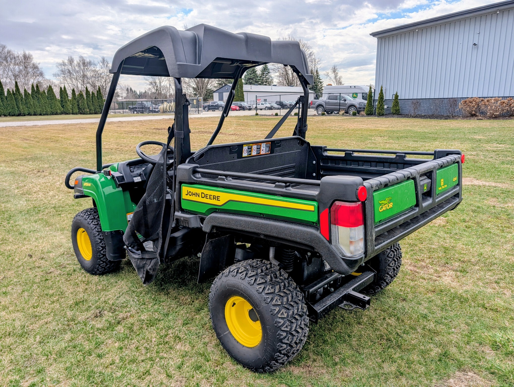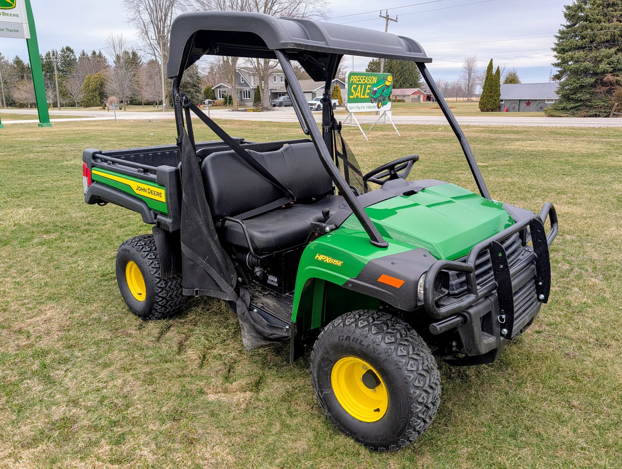 2024, 4x4, 21HP, 617cc, 1 SPD CVT, PWR BOX LIFT, POLY ROOF, ROPS, 2 PASSENGER, BENCH SEAT, HD ALL PURPOSE TIRES, FRONT BRUSH GUARD, BEDLINER, GREEN & YELLOW, INSPECT & FULL SERVICED, FACTORY WARRANTY UNTIL 23APR26