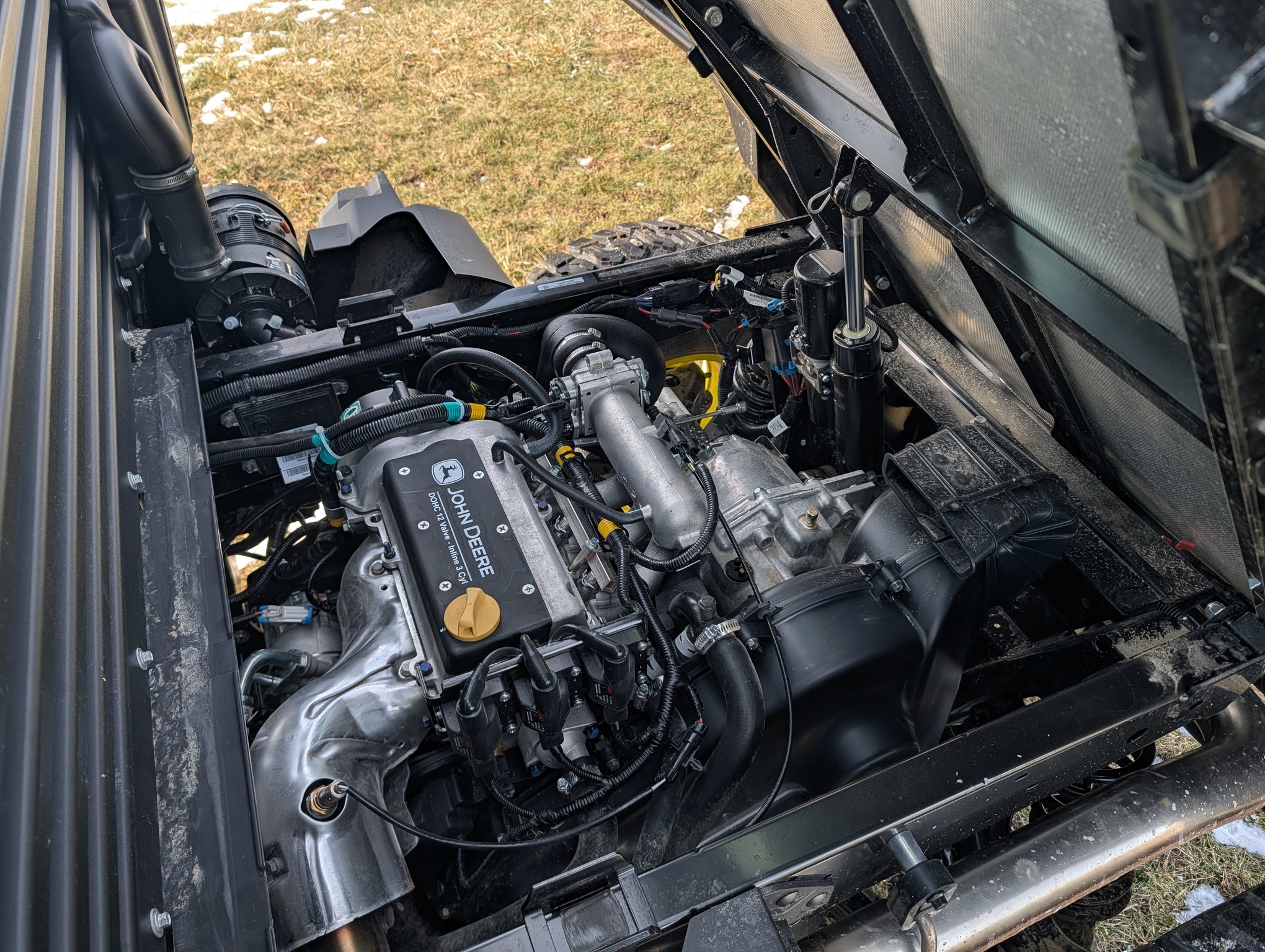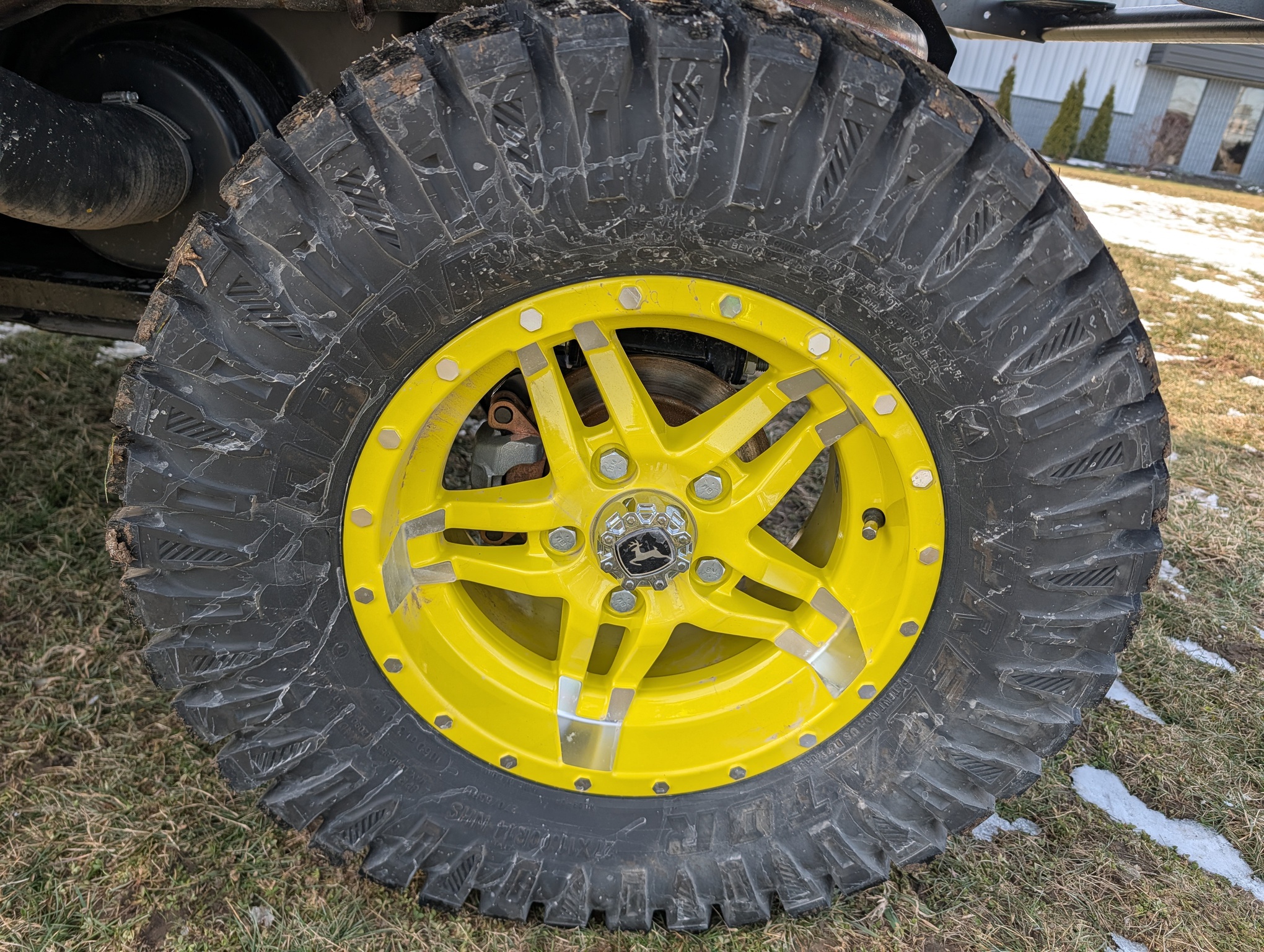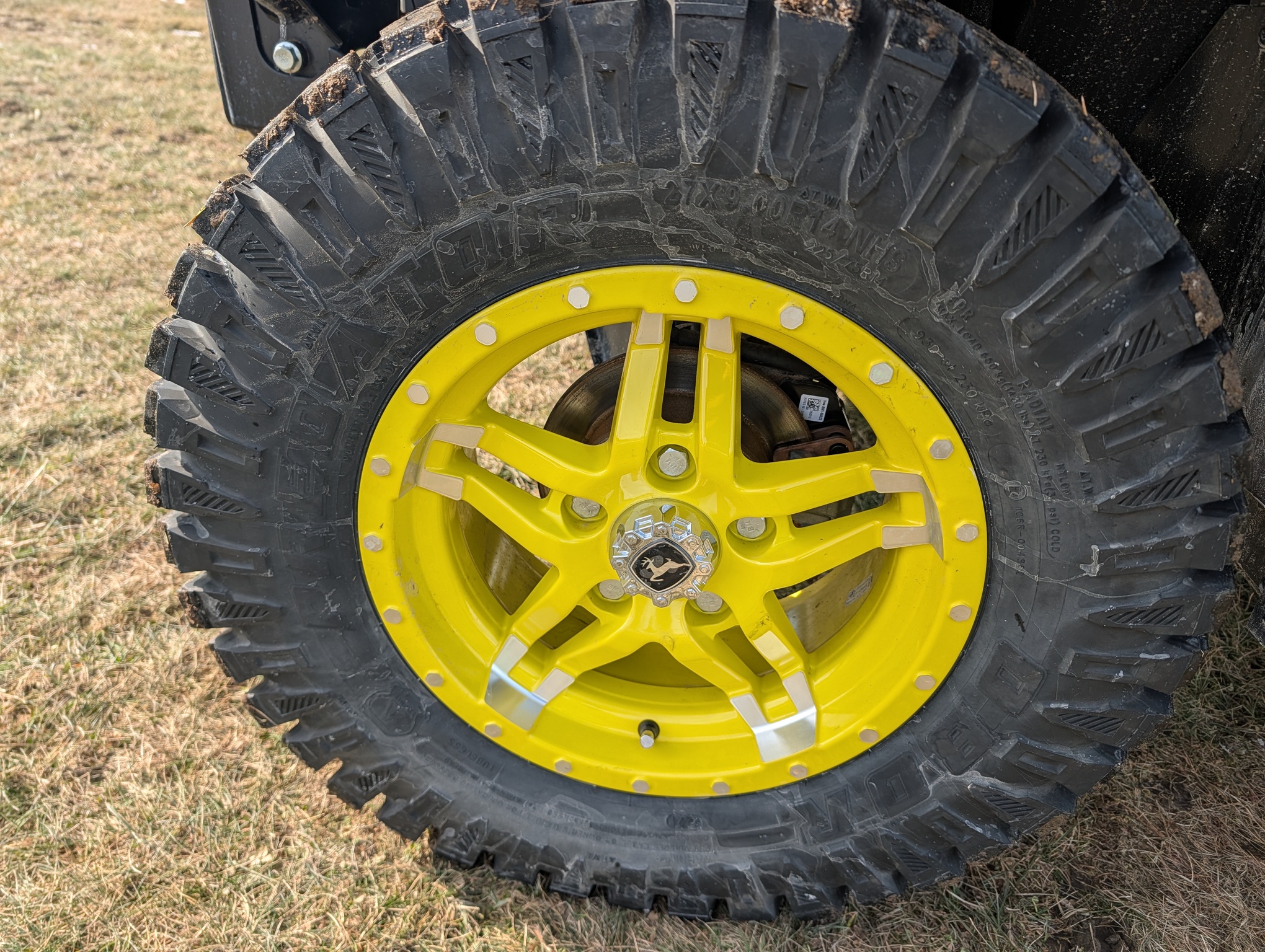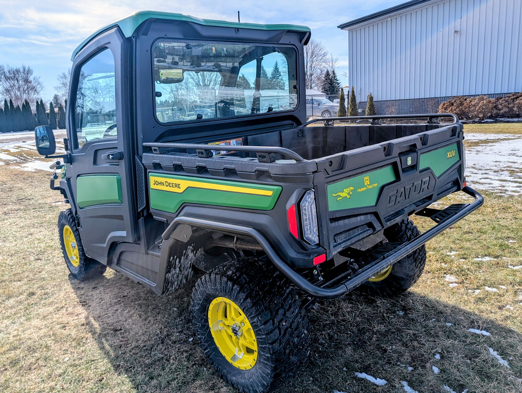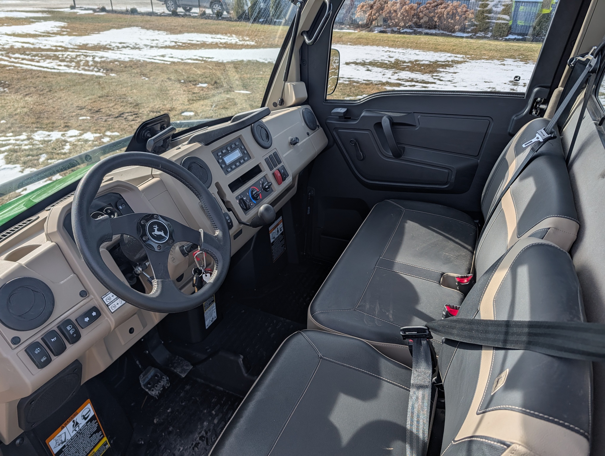 2024, 4x4, 52HP, LIQ.COOL, 2SPD CVT, GAS, DLX CAB, A/C, PWR STEER, PWR BOX LIFT, POLY ROOF, BEDLINER, PWR WINCH, RADIAL TIRES, HD ALL PURPOSE 95%, ALLOY RIMS, WINDSHIELD, MIRRORS, FRONT BUMPER, FRONT BRUSH GUARD, TURN SIGNALS, 2 PASSENGER, BENCH SEAT, GREEN & YELLOW, INSPECT&FULL SERVICE, FACTORY WARRANTY UNTIL 09JUN26