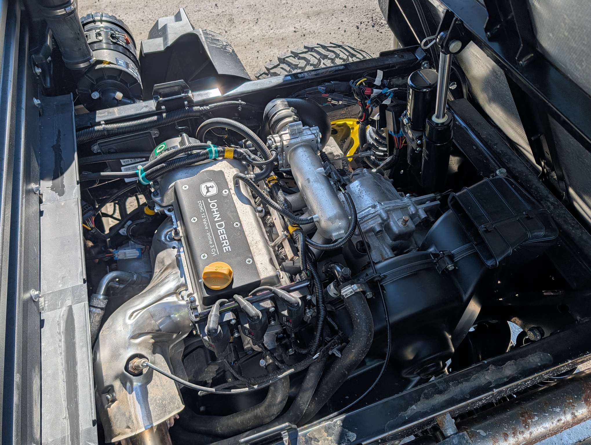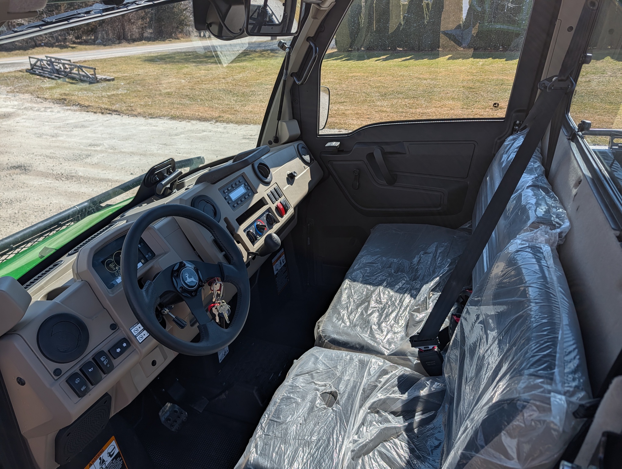 2024, 4x4, 52HP, 812cc, 100HRS, DLX CAB-A/C, 2SPD-, CVT, LIQ.COOL, 2 PASSENGER, BENCH SEAT, BEDLINER, RADIAL TIRES 95%, ALLOY RIMS, POWER STEERING, PWR BOX LIFT, POLY ROOF, PWR WINCH, GAS, WIPER, FRONT BRUSH GUARD, FRONT BUMPER, FENDER GUARDS, TURN SIGNALS, GREEN & YELLOW, ULT PROTECTION PKG, ULT COMFORT & CONVENIENCE, FULLY SERVICED, FACTORY WARRANTY UNTIL 09JUN26
