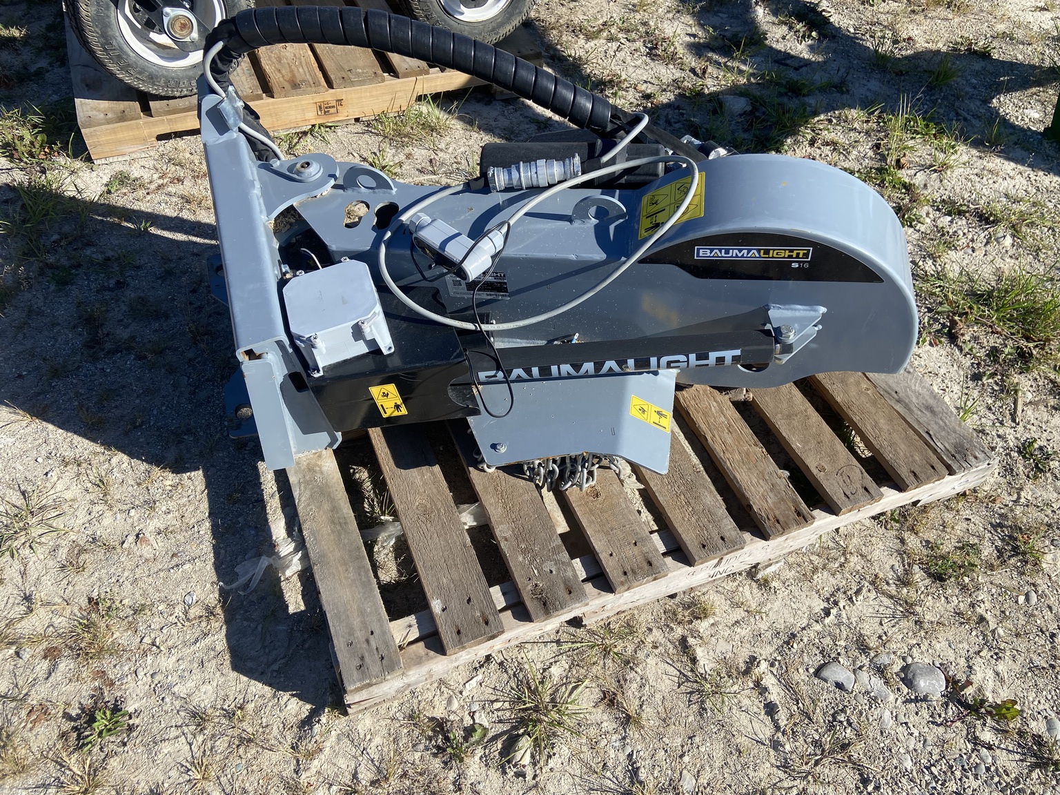 2023, BAUMALIGHT, 24.5HP, YANMAR ENG, 425HRS, STAND ON PLATFORM, JOYSTICK CONTROLS, 42" LG BKT, 42" PALLET FORKS, RC586 POST HOLE AUG, S16 STUMP GRINDER, WIFO 48" POWER RAKE, WIFO 46" SNOWBLOWER