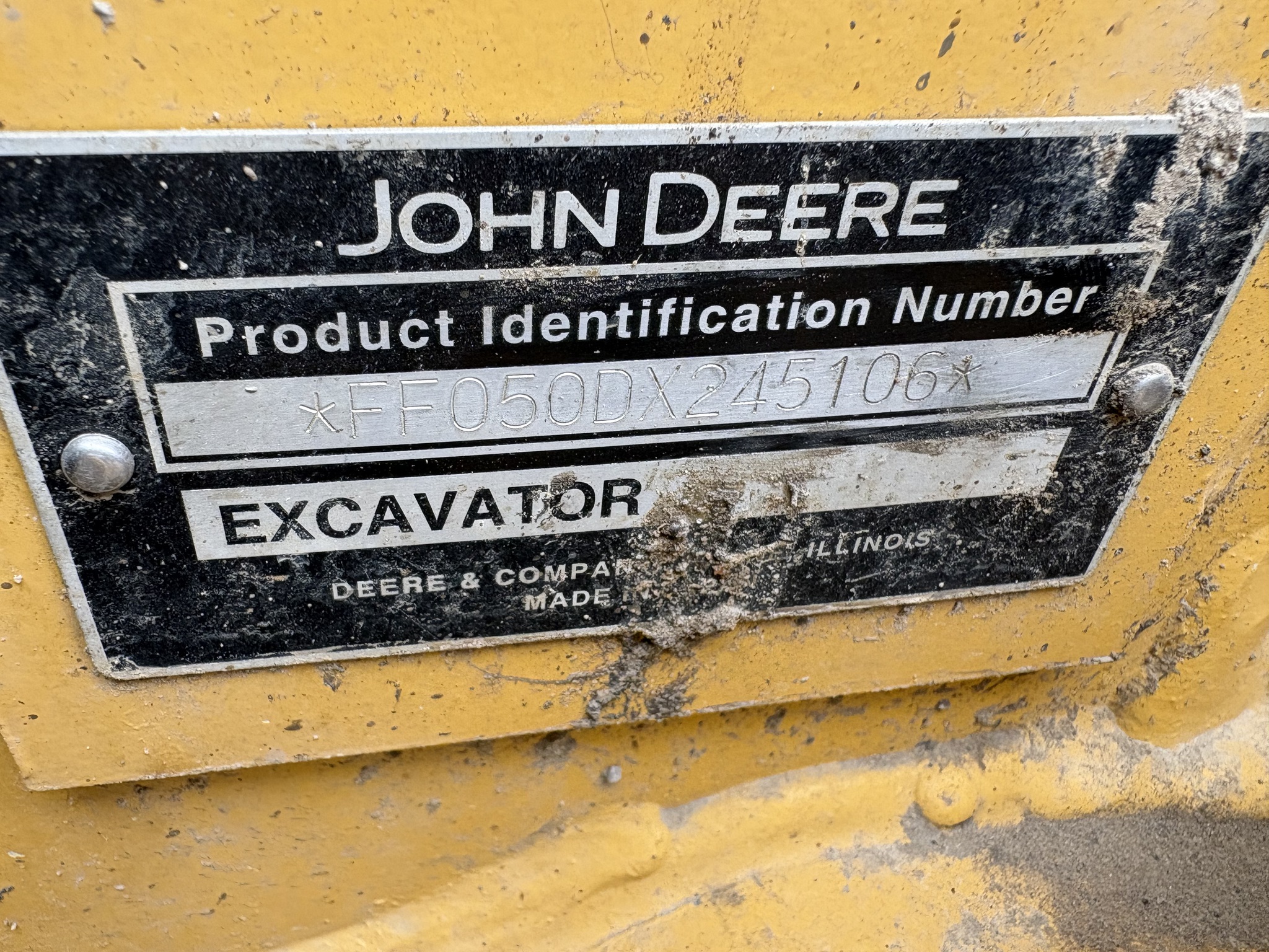 2006, 40HP, 4428HRS, CAB-HEAT-A/C, ISO CONTROLS, 5.0 TON, 12.6' MAX DIG DEPTH, MAN.BKT QUICK-TACH, LESS THUMB, STANDARD ARM, LESS AUX HYD, RUBBER TRACKS, RIGID FRONT BLADE, LESS RADIO, SELLING FIELD READY