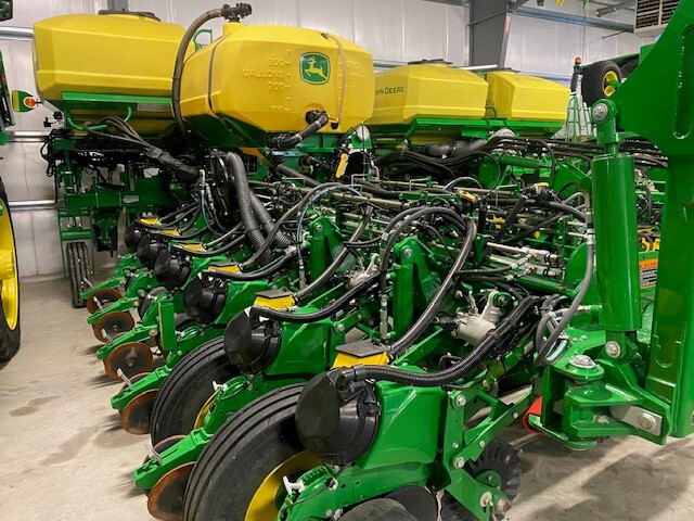 2022, 16R, 30"SPACING, CCS 130 BUSHELL, TWO POINT, LOW RATE EXACTRATE LIQ FERT, LQ FERT TRANSFER, ELECT DRIVE EXACT EMERGE, HP CORN BOWLS, INDEPENDENT MARKERS, SEED STAR 4 (NO DISPLAY), WITH EZ FOLD FRONT FRAME, NARROW TRANSPORT, UNIT MOUNT COULTERS, INDEPENDENT ROW HYDRAULIC, DOWN FORCE, INDIVIDUAL ROW SHUTOFFS, PREMIUM, LIGHTING, AUX REAR HYDRAULICS, CAST CLOSING WHEELS, NEW COULTER AND OPENER BLADES, 5500 ACRES, SELLING RECONDITIONED