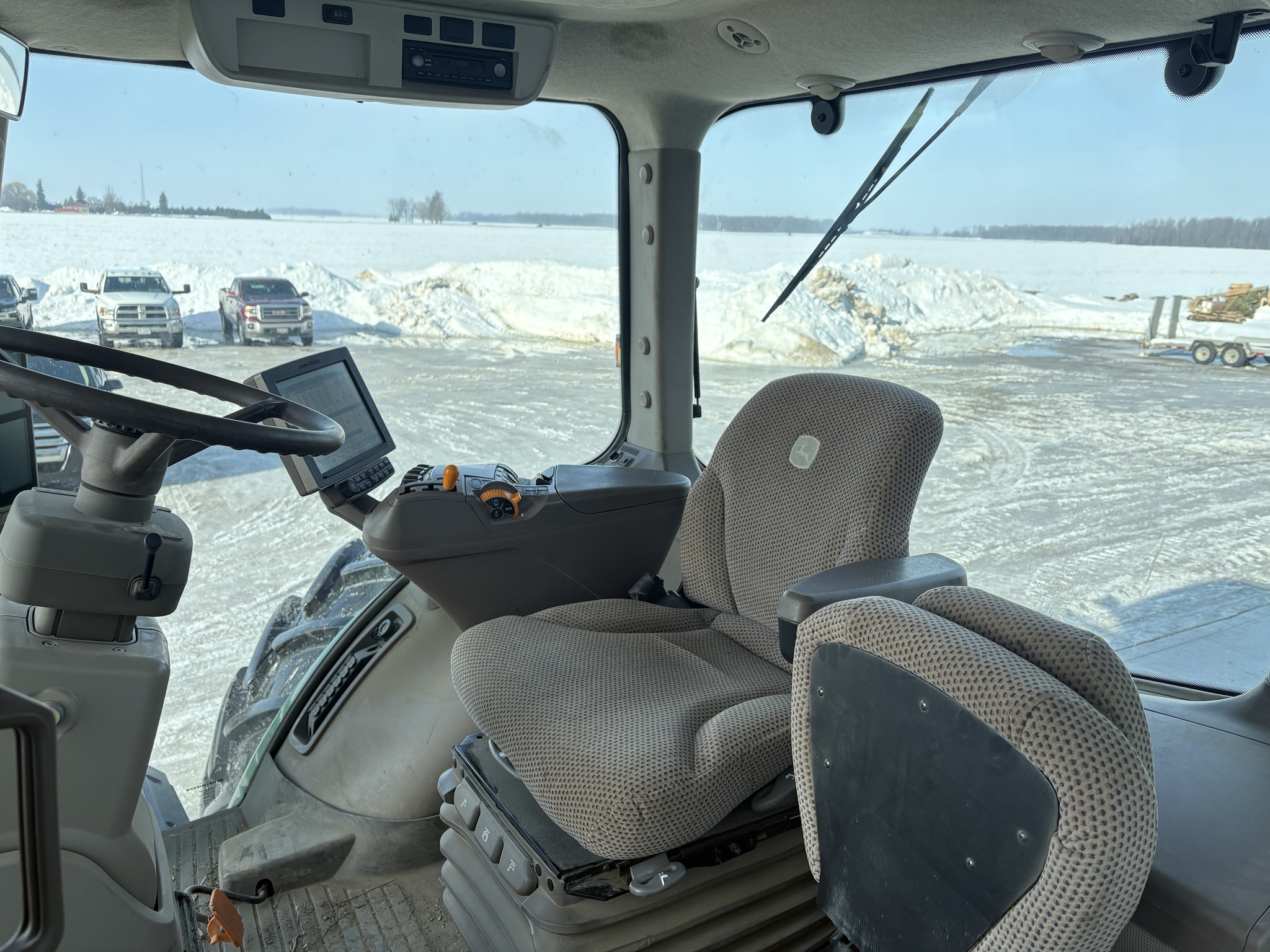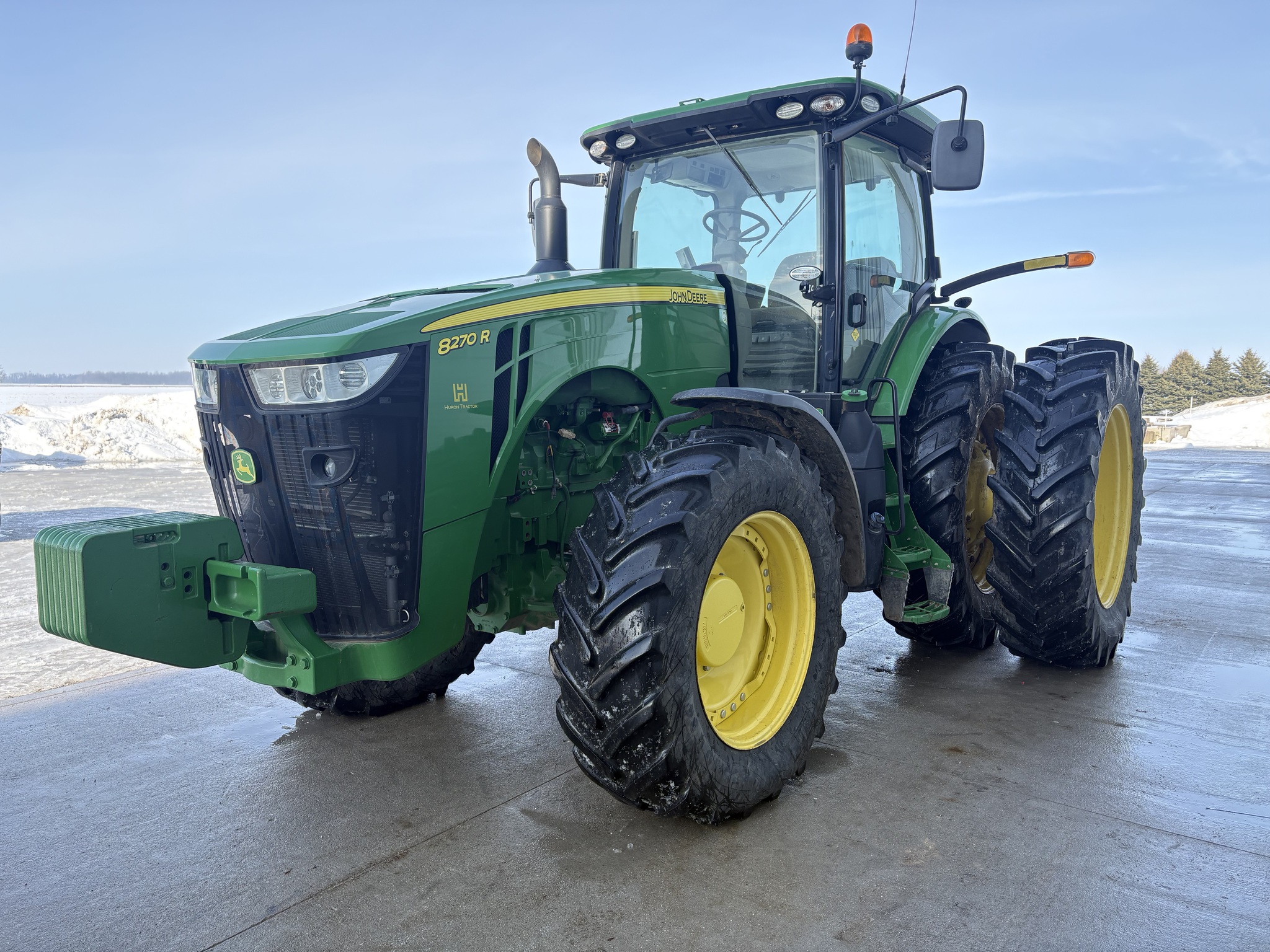 2014, MFWD, 270ENG HP, 2670HR, 40KPH, 16SPD, POWERSHIFT, R&P AXLE W/CAST CTR, AXLE DUALS, 480/70R34, 520/85R46, AUTOTRAC READY, AUTOTRAC ACT, GEN.4 COMMAND CTR, 10" TOUCH COMMAND CTR, 4 REMOTES, 1000RPM-1 3/4 PTO, CAT 3-3PT HITCH, PREM LED LIGHT PKG, AIR SEAT, INSTRUCTOR SEAT, FRONT BASE WEIGHT, FRONT FENDERS, DRAWBAR CLEVIS